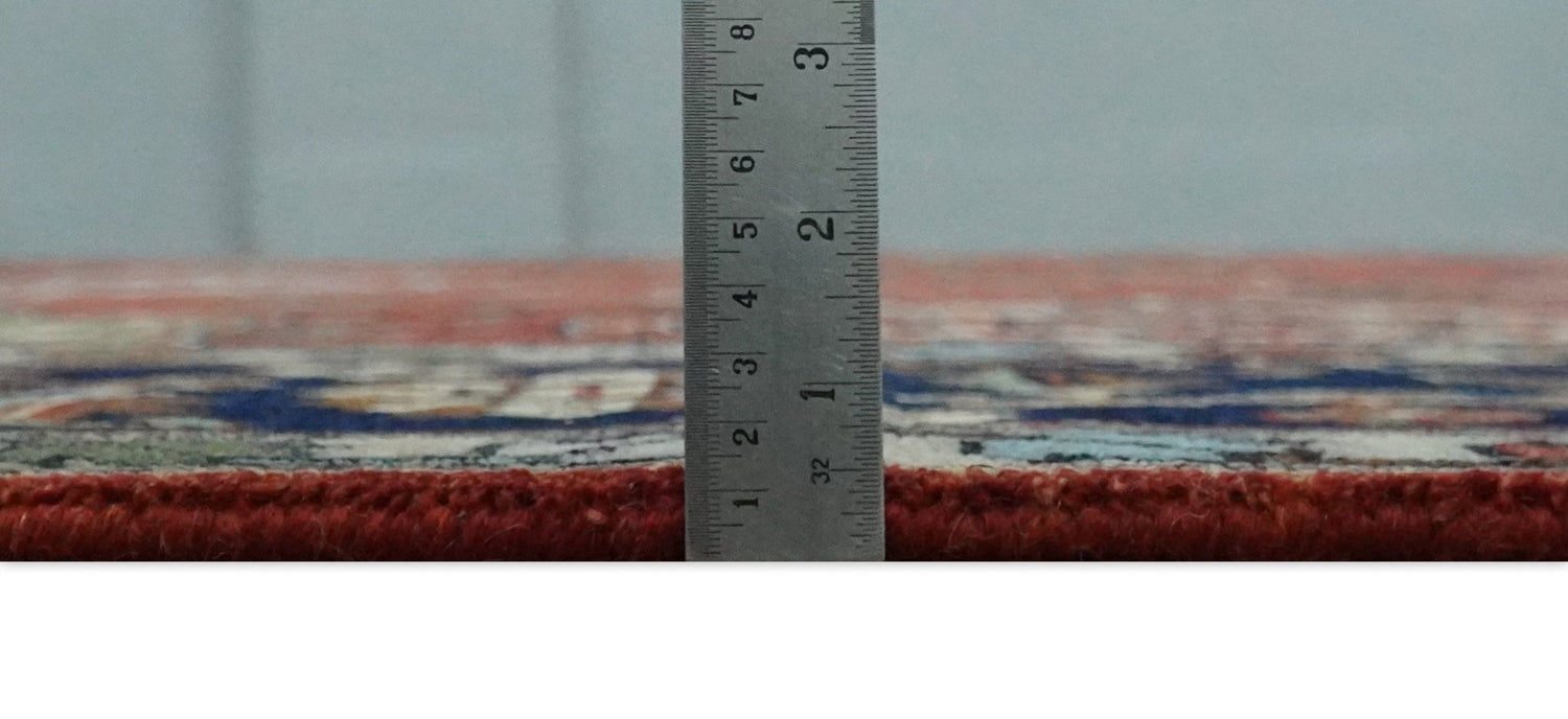 This specific rug is made in India, in the city of Bhadohi. Bhadohi is one of the biggest rug manufacturing cities. Carpet weaving in the region dates back to the 16th century during the reign of Akbar. The skilled artisans of Bhadohi have been carrying the tradition of rug-making for centuries.