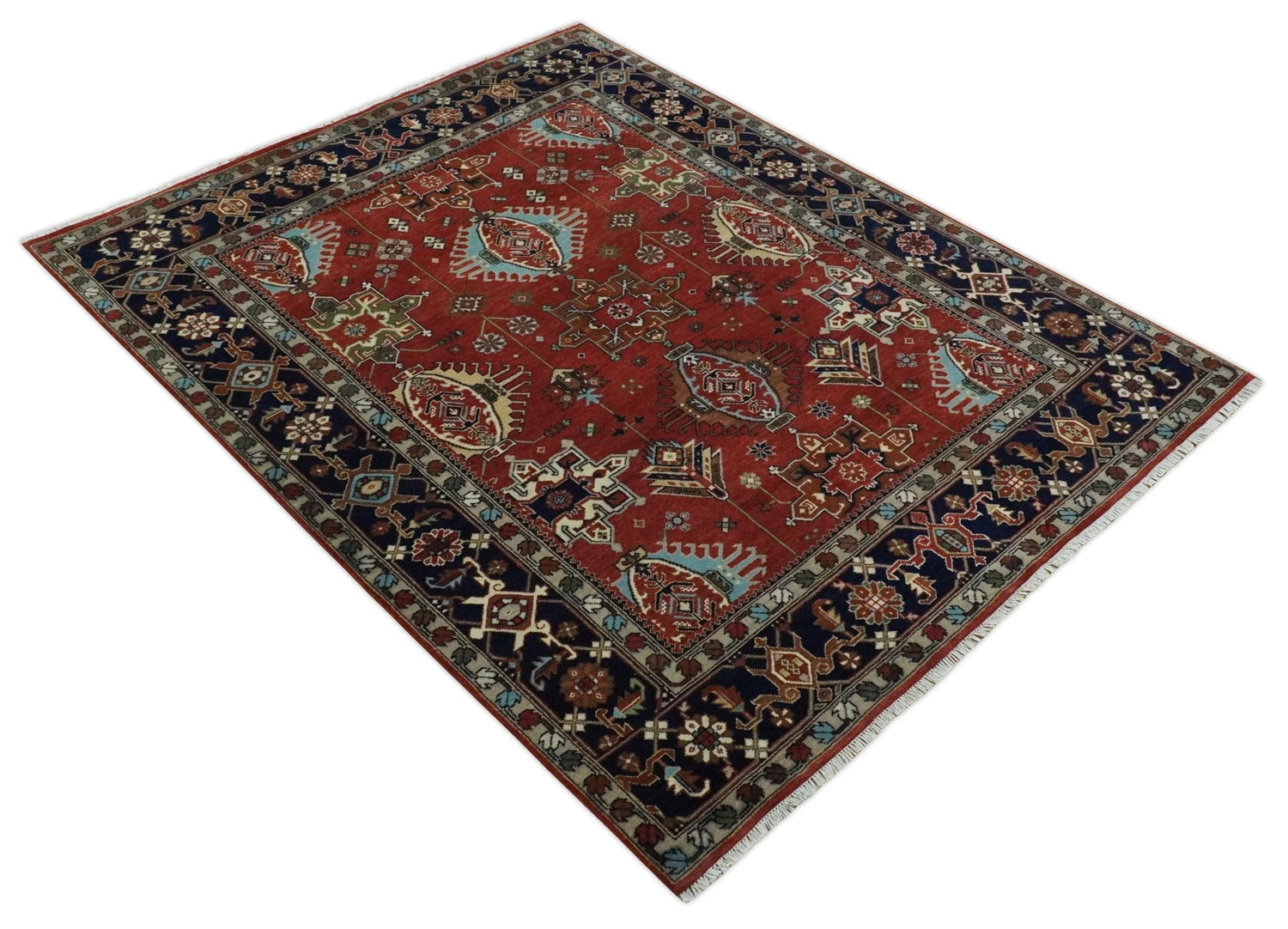 Rust, Blue and Beige Hand Knotted Antique 8x10 Traditional Wool Rug