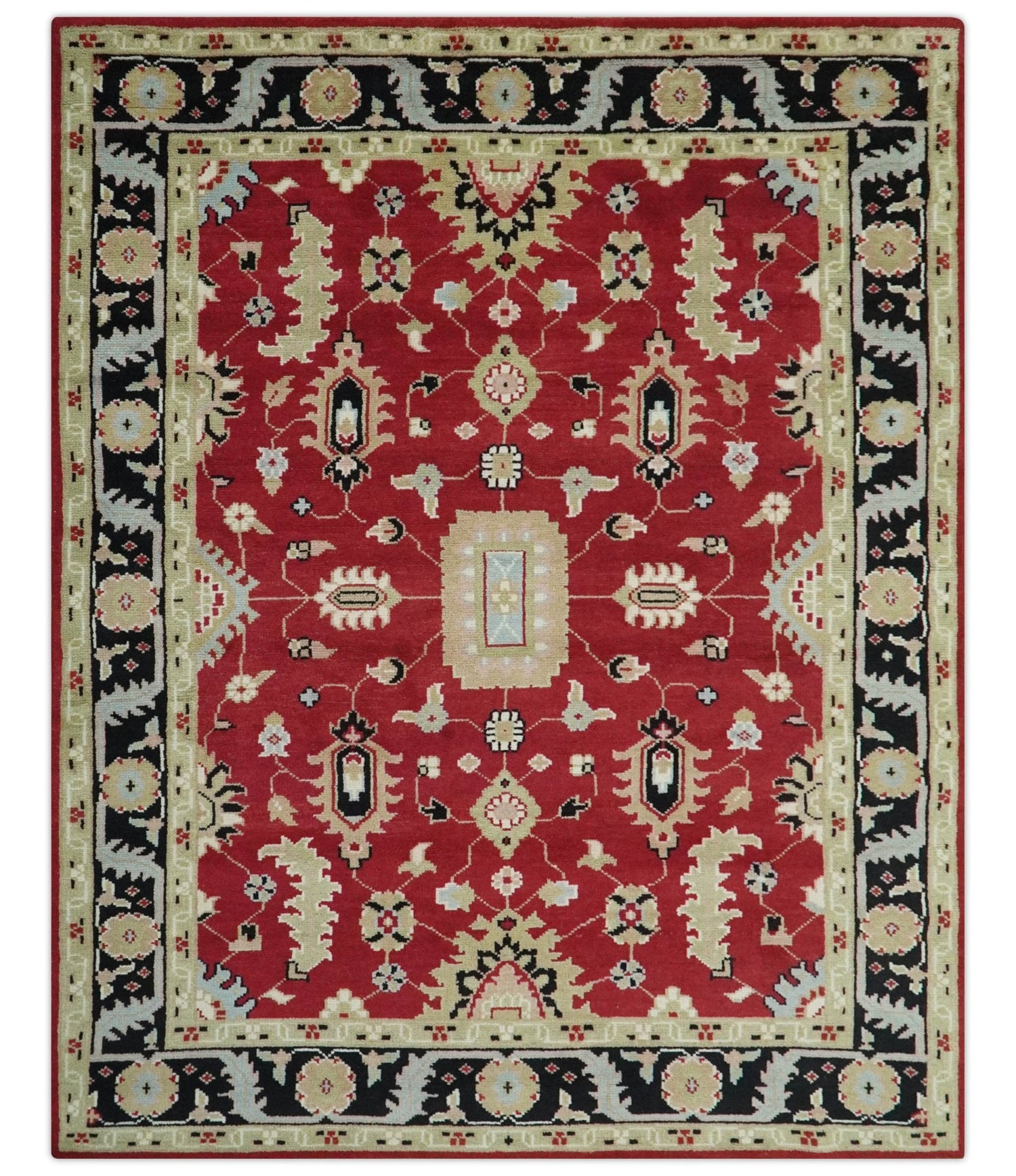 Rust, Olive and Black 8x10 Hand Knotted Traditional Oriental Wool Area Rug