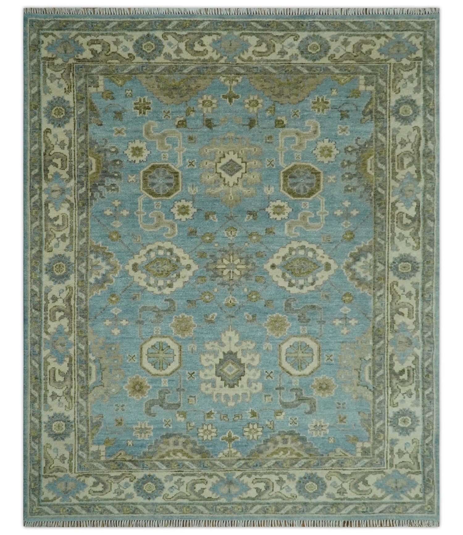 Sea Blue, Green and Ivory 8x10 Hand Knotted Traditional Oriental Oushak wool rug - 8x10 is backordered and will ship as soon as it is back in stock.