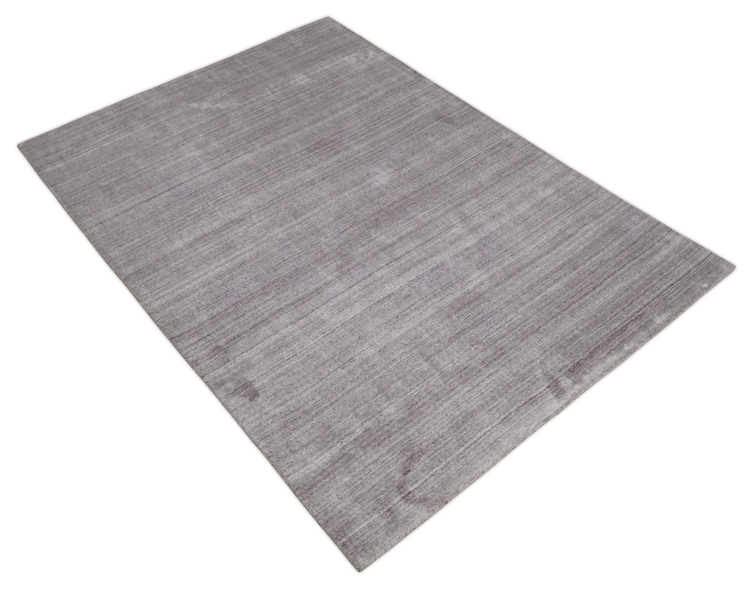 Shaded Solid Lavender purple Scandinavian 5x7 Blended bamboo Silk Flatwoven Area Rug | HL40