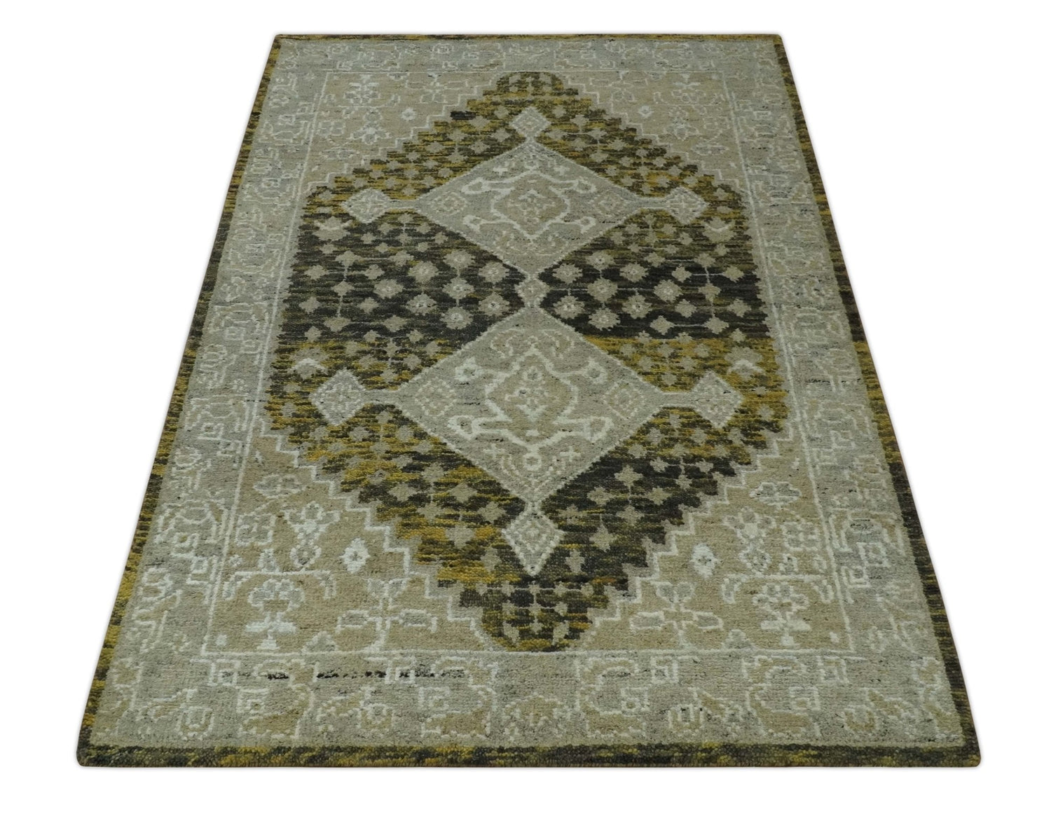 Silver, Beige, Olive and Charcoal Hand Knotted Traditional Heriz 5x8 wool Area Rug