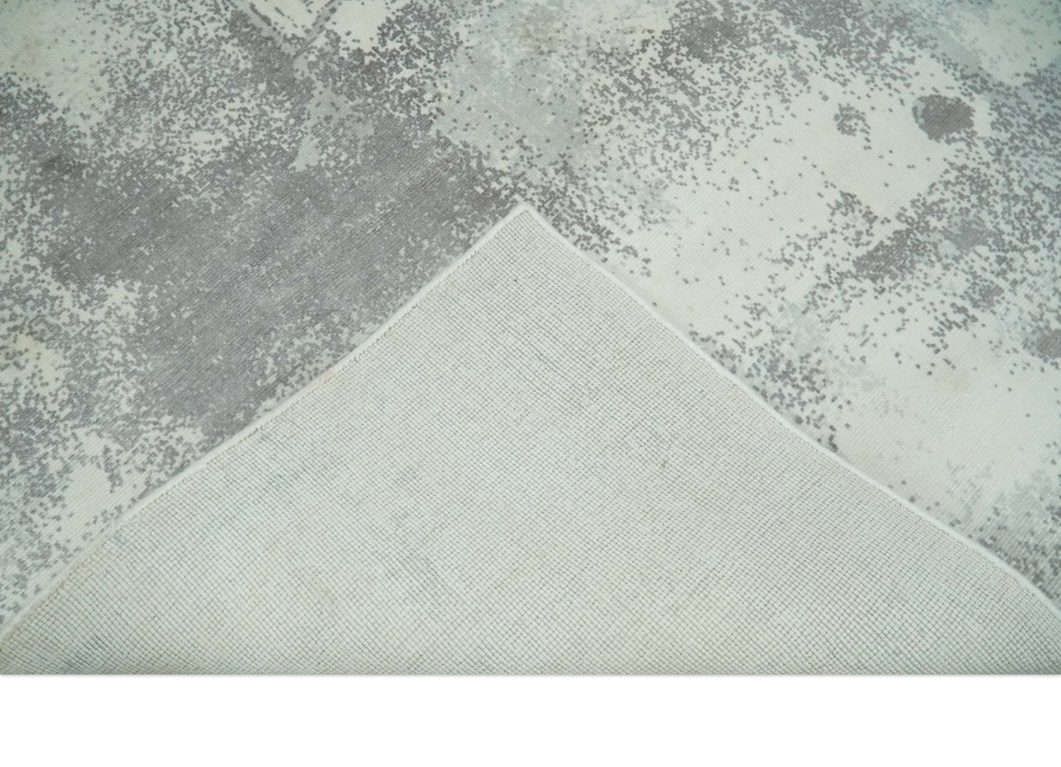 Silver, Charcoal and Ivory Modern Abstract 5x8 Hand loom viscose Area Rug