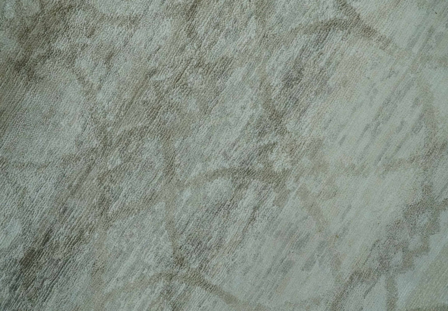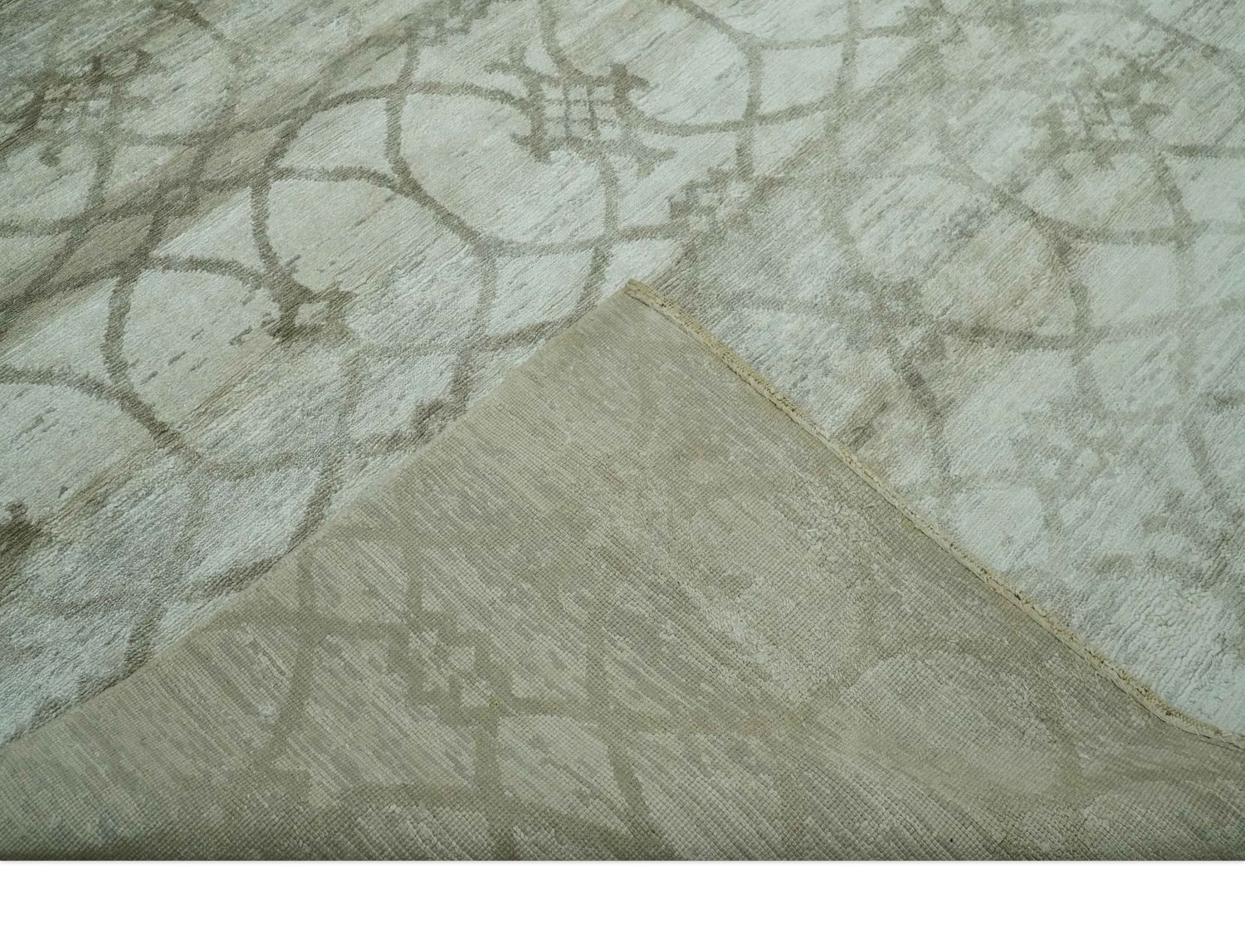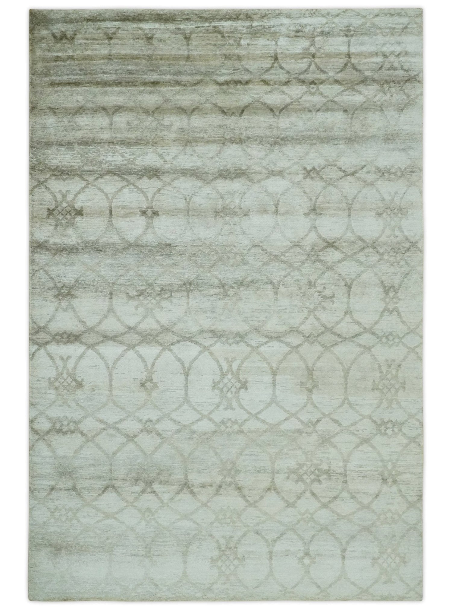 Silver, Olive and Gray Traditional Ikat Design 6x9 Hand loom Bamboo Silk Area Rug