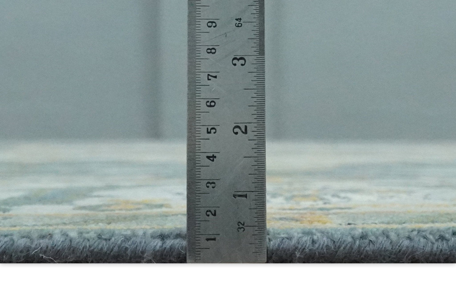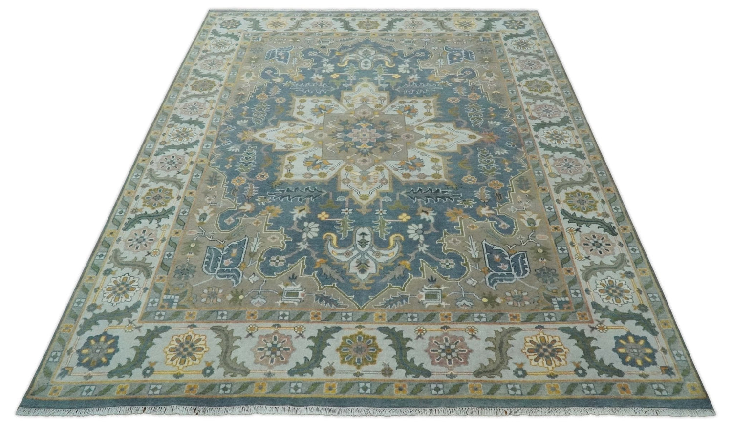 Silver, Teal and Taupe Hand knotted Traditional Heriz Serapi 9x12 Wool Area Rug