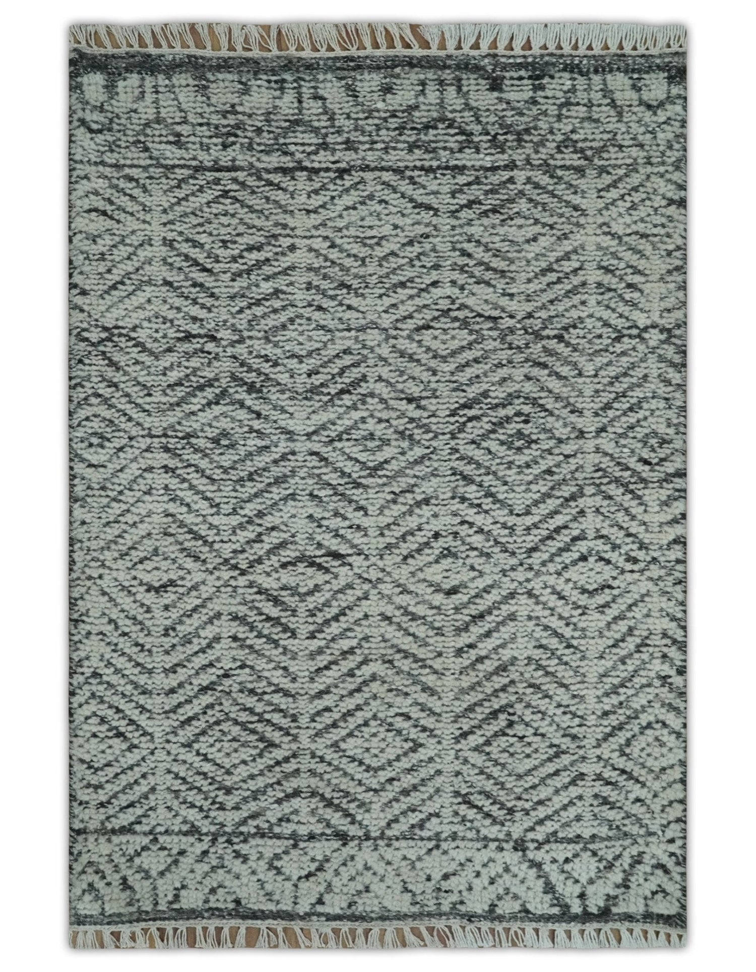 Small 2x3 Hand Knotted Ivory and Charcoal Tribal Design Wool Rug - 2x3 is backordered and will ship as soon as it is back in stock.