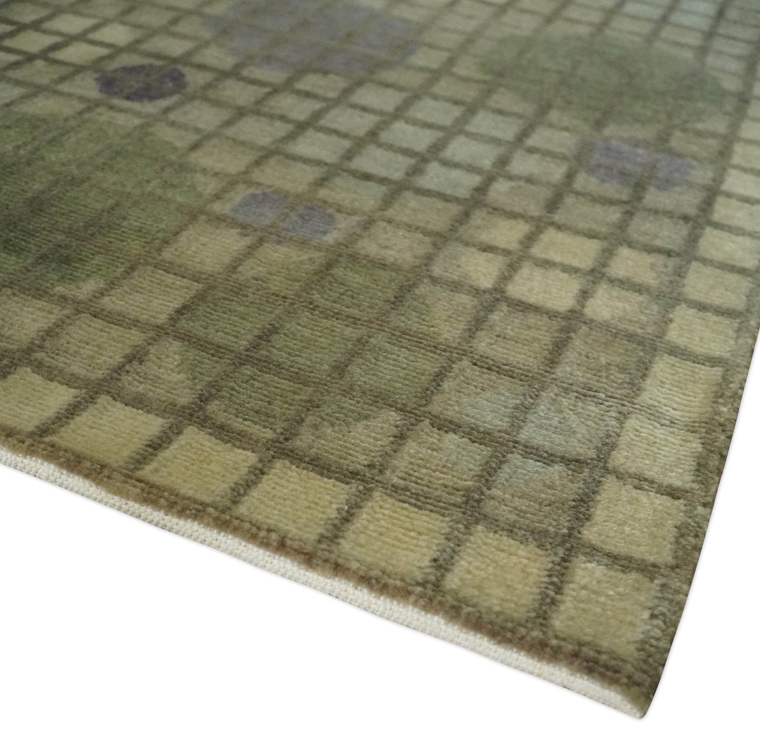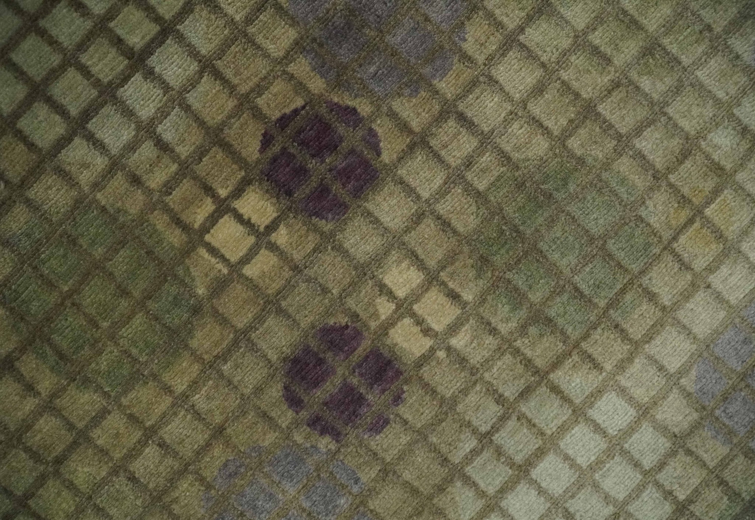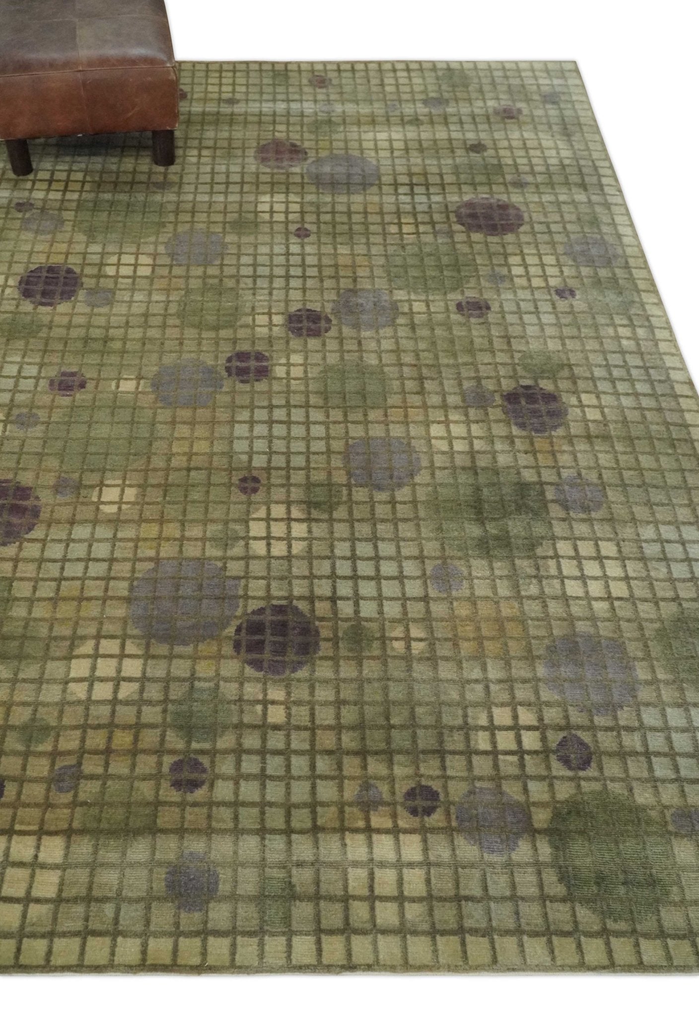 Soft Green, Olive and Purple Geometrical Polka Dot 5x8 Hand knotted Rug