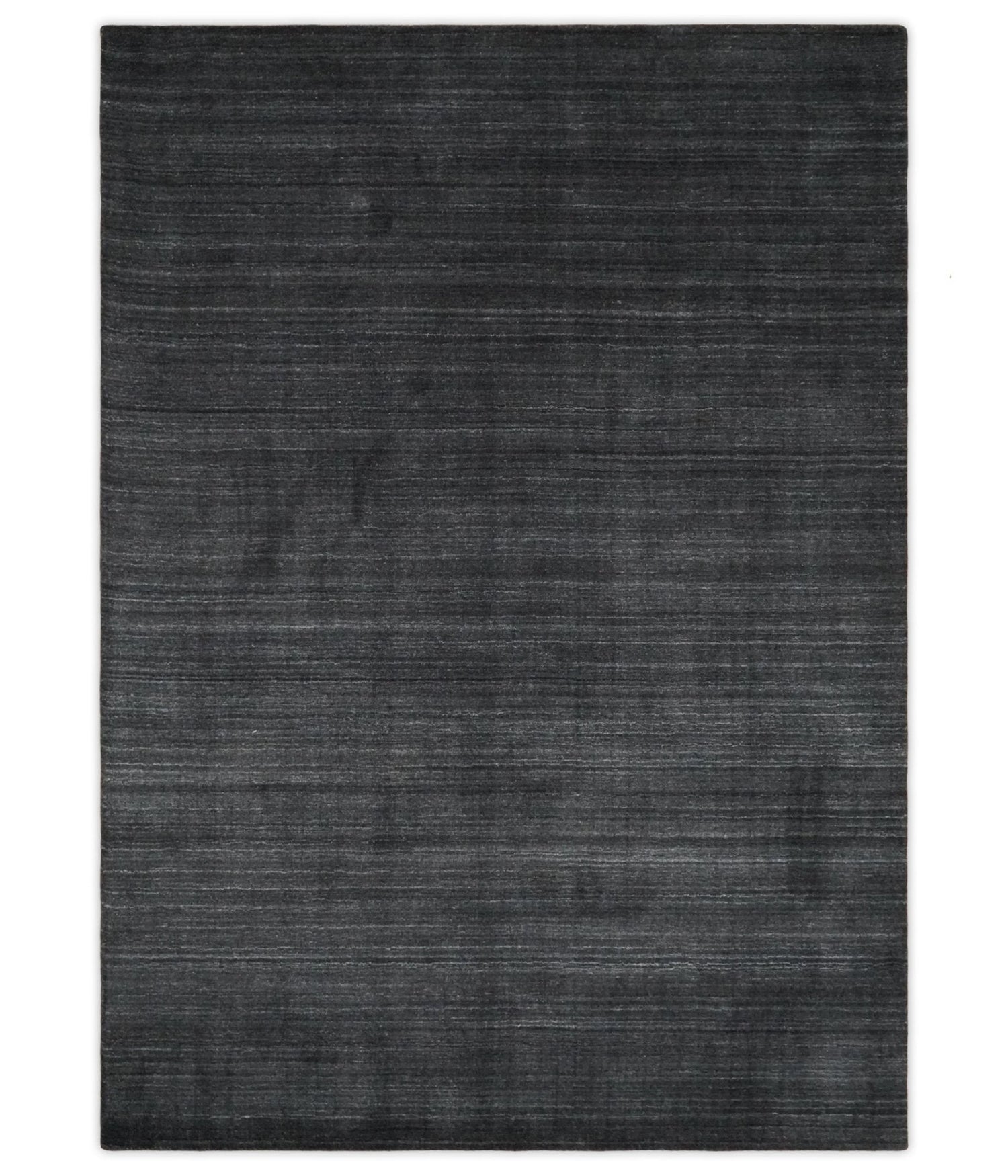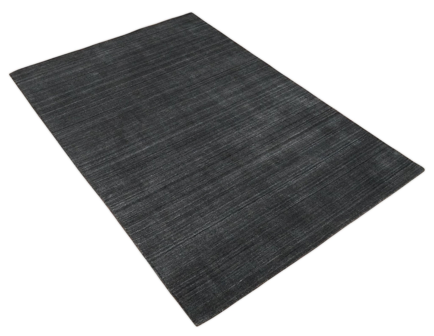 Solid Charcoal Black Scandinavian 5x7 Blended Wool Flatwoven Area Rug | HL13