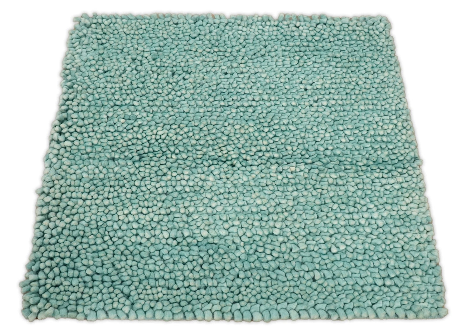 Square 3x3 Blue Wool Shag Handmade Felted Rug | SHA2
