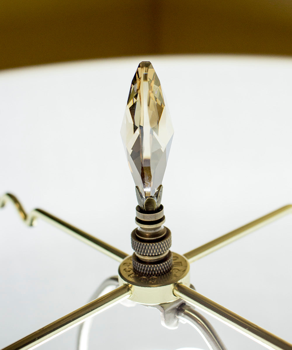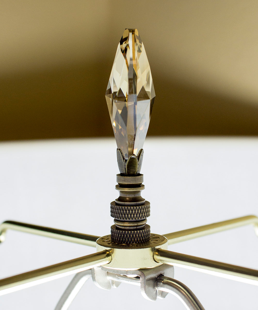 Stephanov Large Champagne Crystal Teardrops Lamp Finial Antique Brass 2.85"h