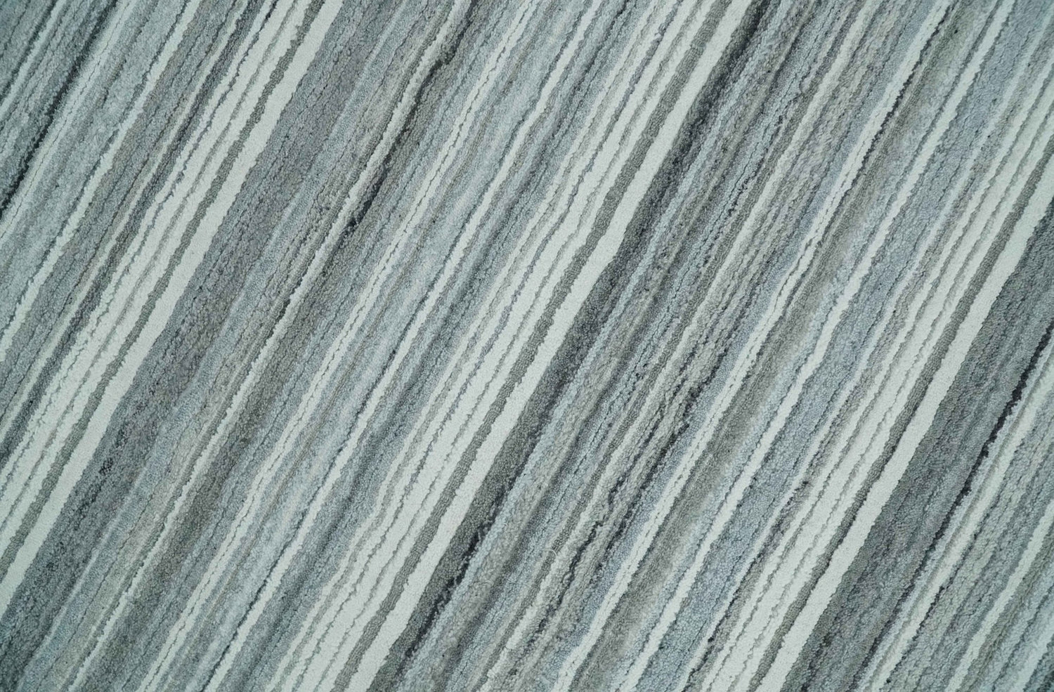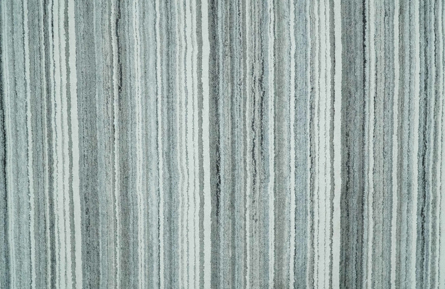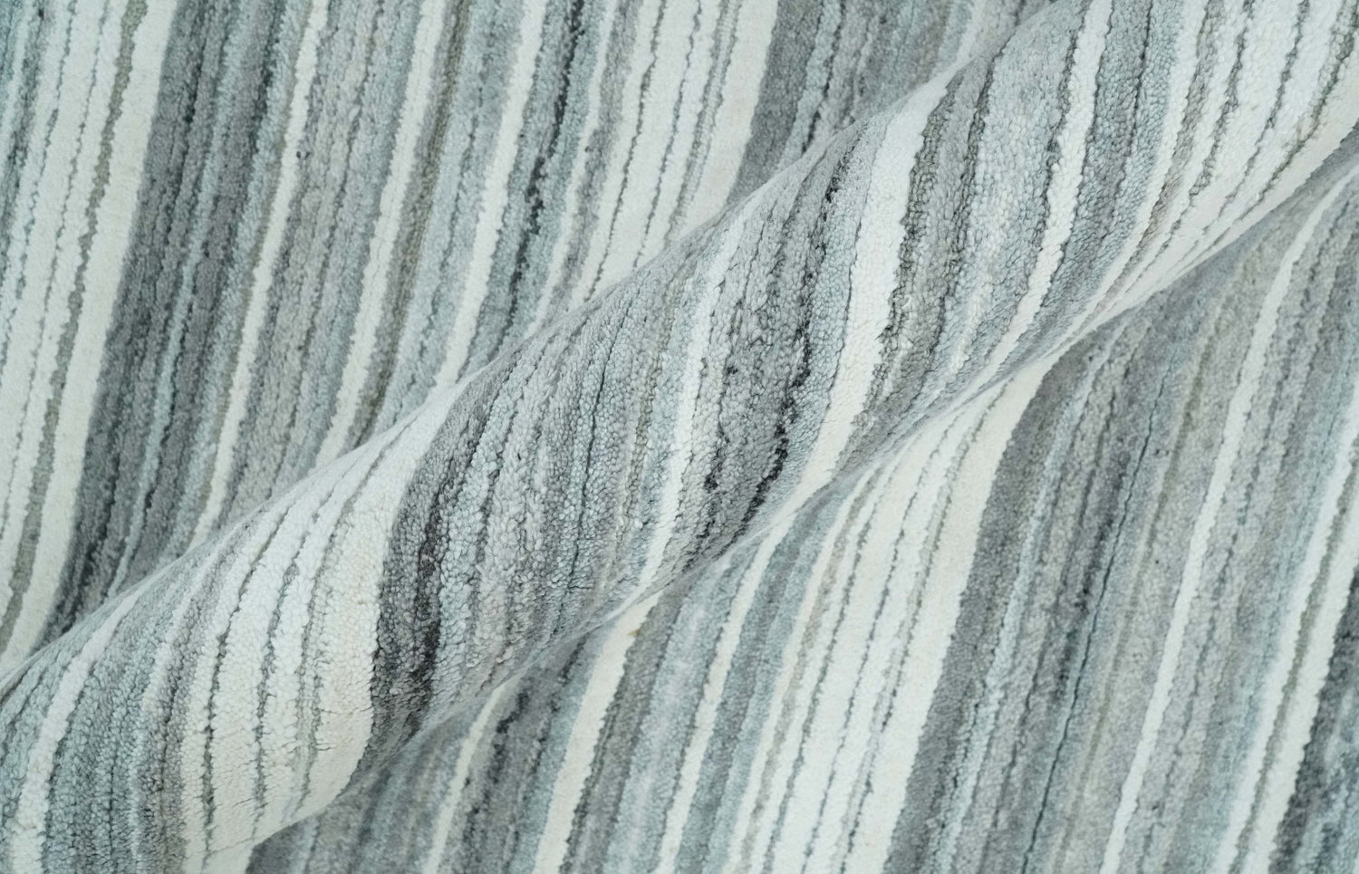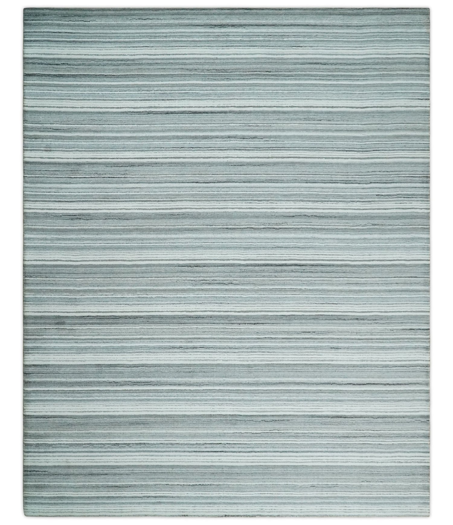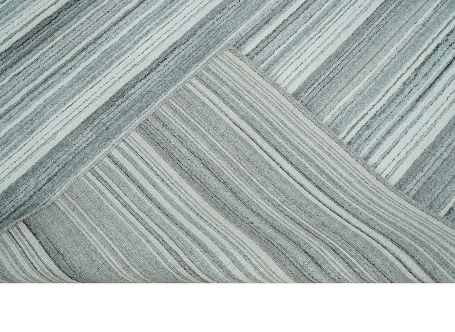 Striped Flatwoven 8x10 White, Silver and Gray Scandinavian Hand Made Blended Wool Area Rug | KE3