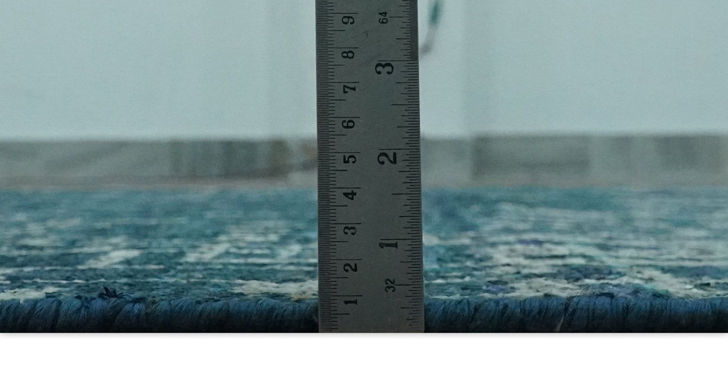Teal, Blue and Silver 5x8 Hand Knotted Modern Abstract Art Silk Area Rug