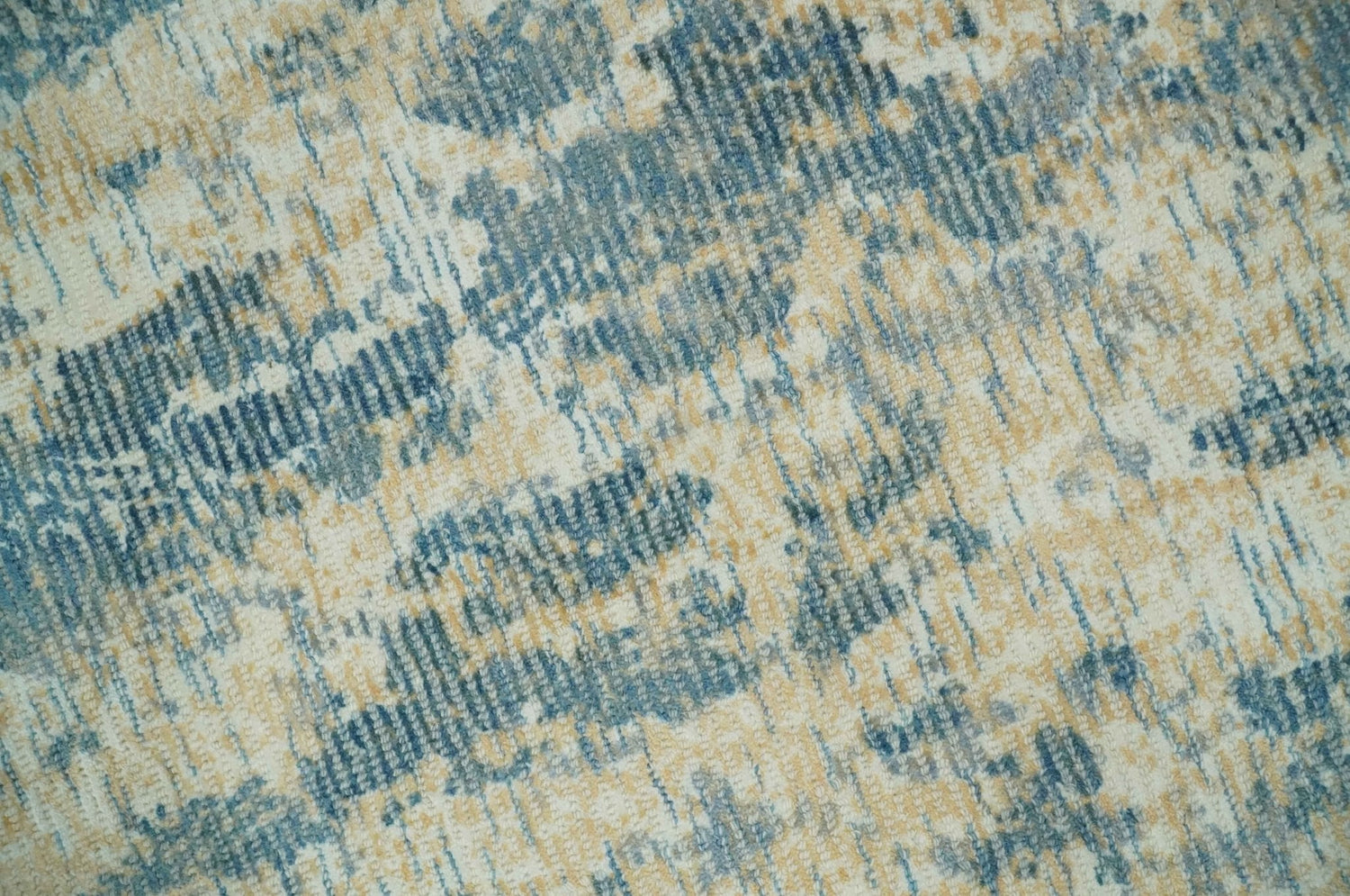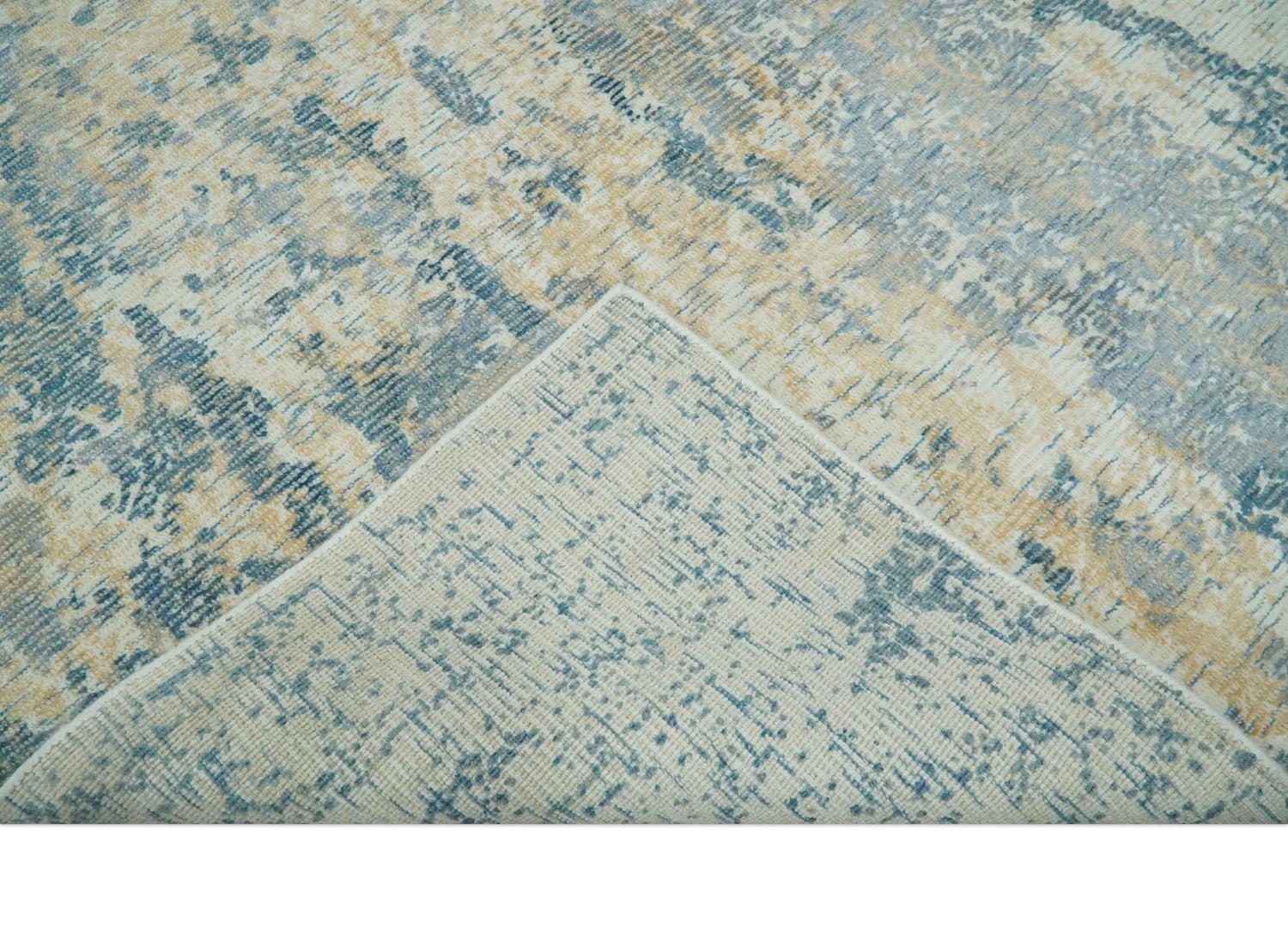 Teal, Gold and Ivory Modern Abstract 5x8 Hand loom wool and Viscose Area Rug
