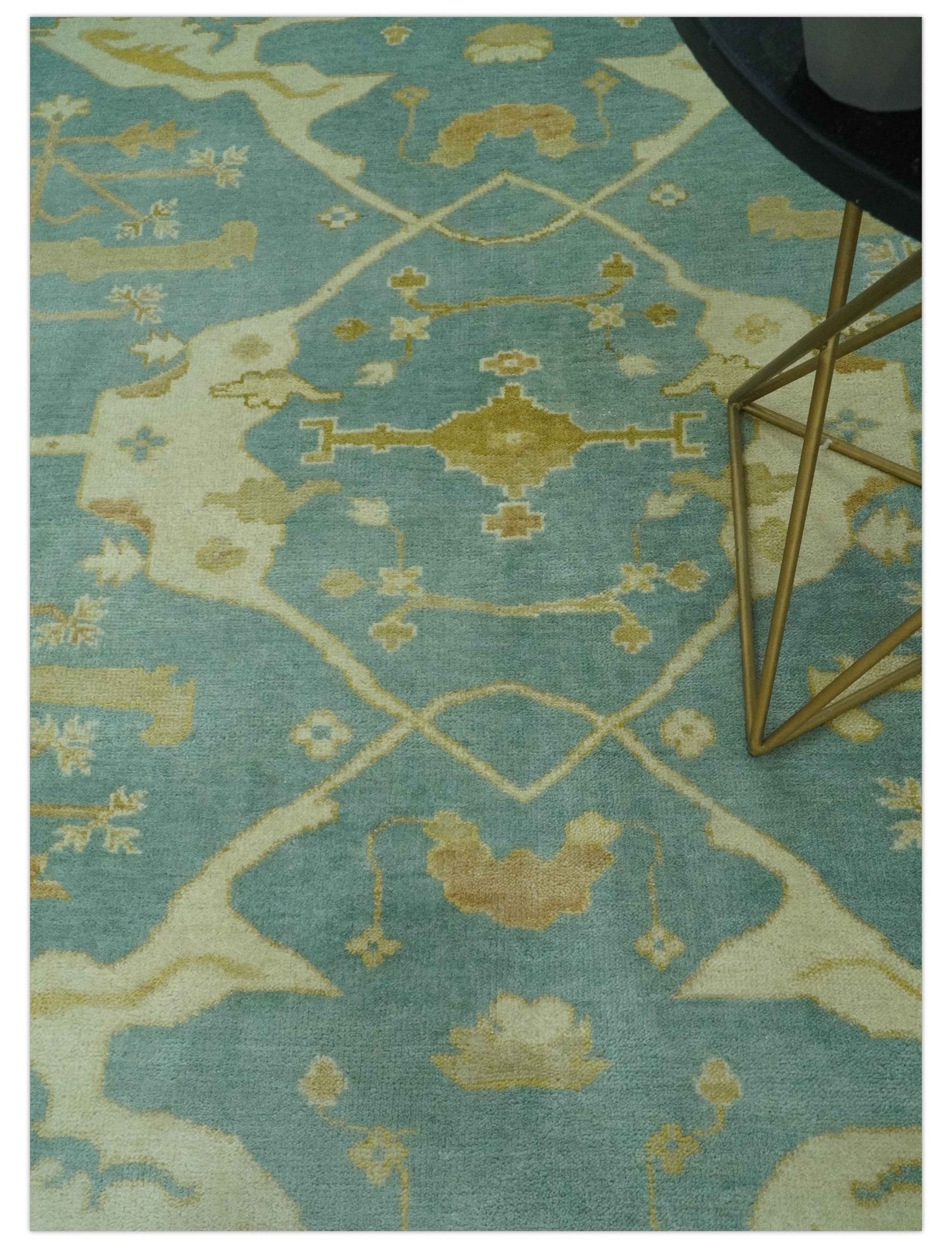 Teal, Olive and Beige Hand Knotted 8x10 Traditional Oriental Oushak wool area rug