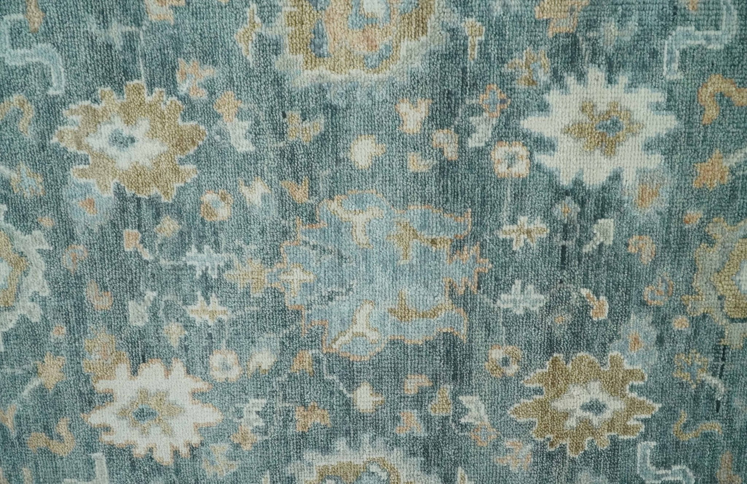 Teal, Olive and Silver Antique Style Hand knotted 8x10 Oushak wool Area Rug - 8.1x10.5 is backordered and will ship as soon as it is back in stock.