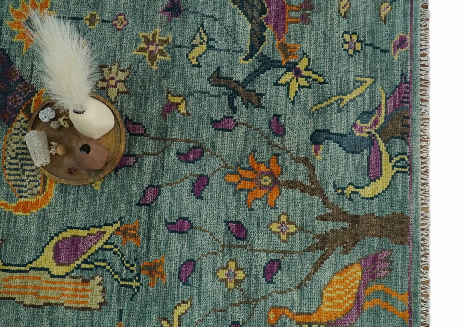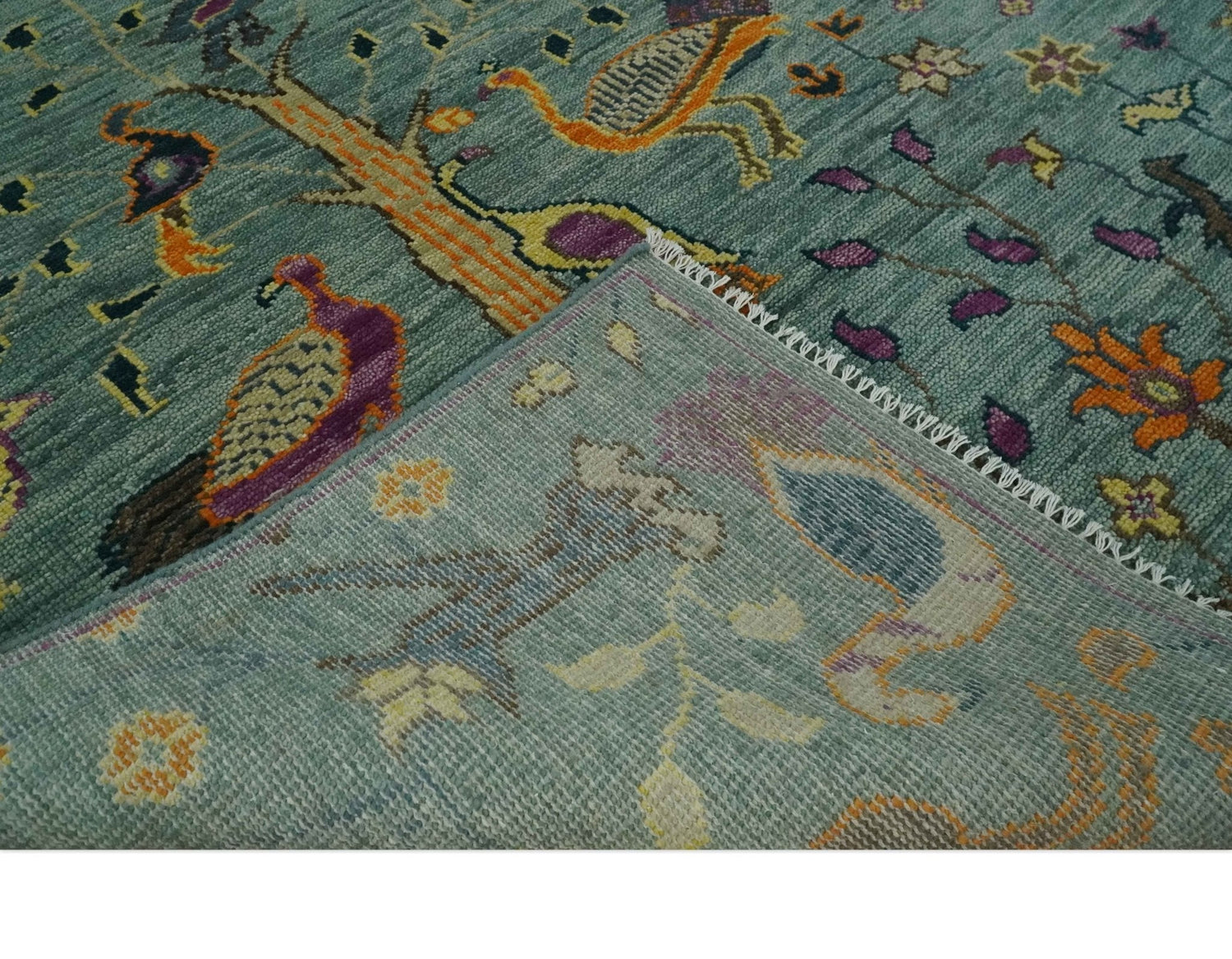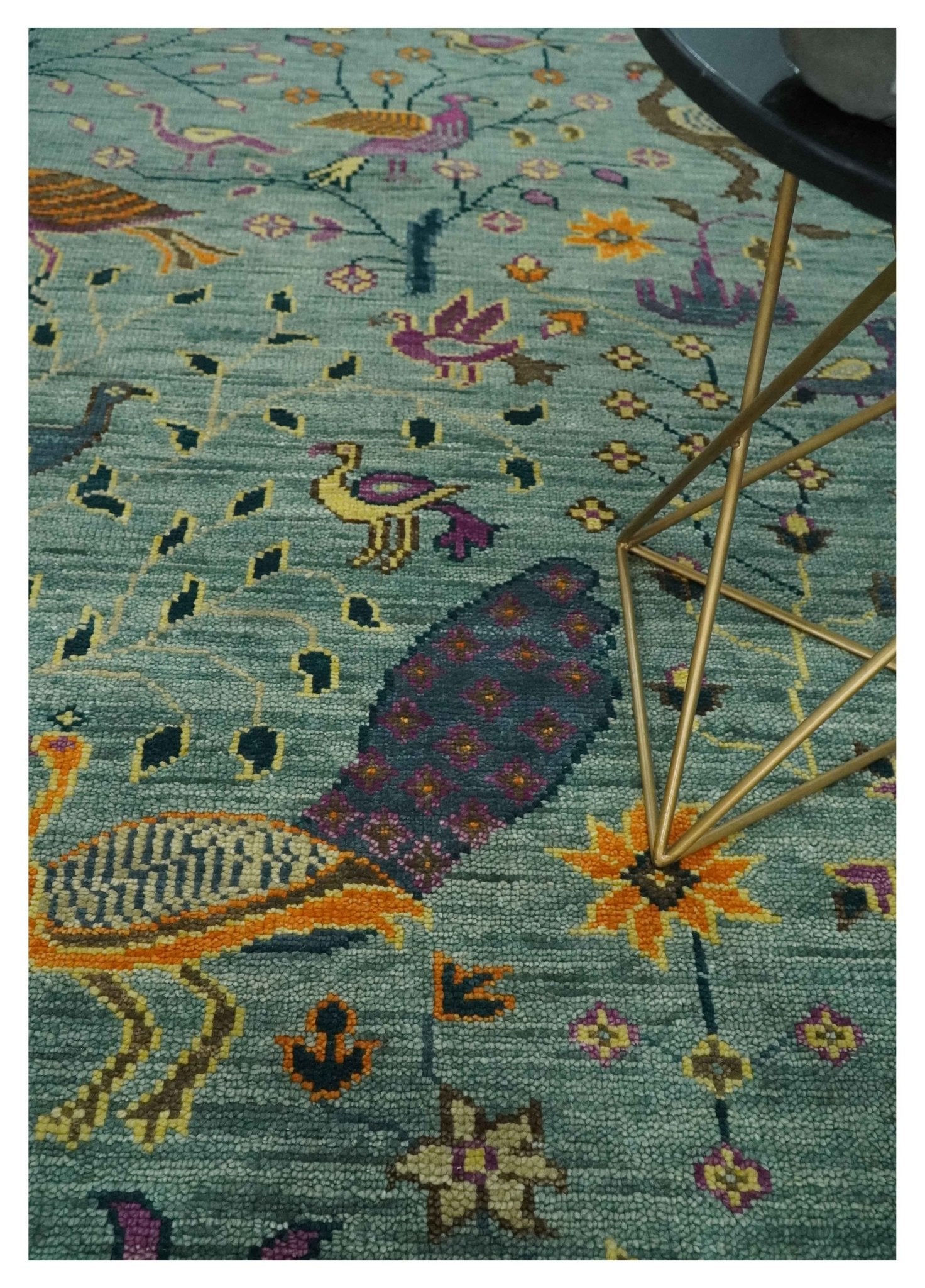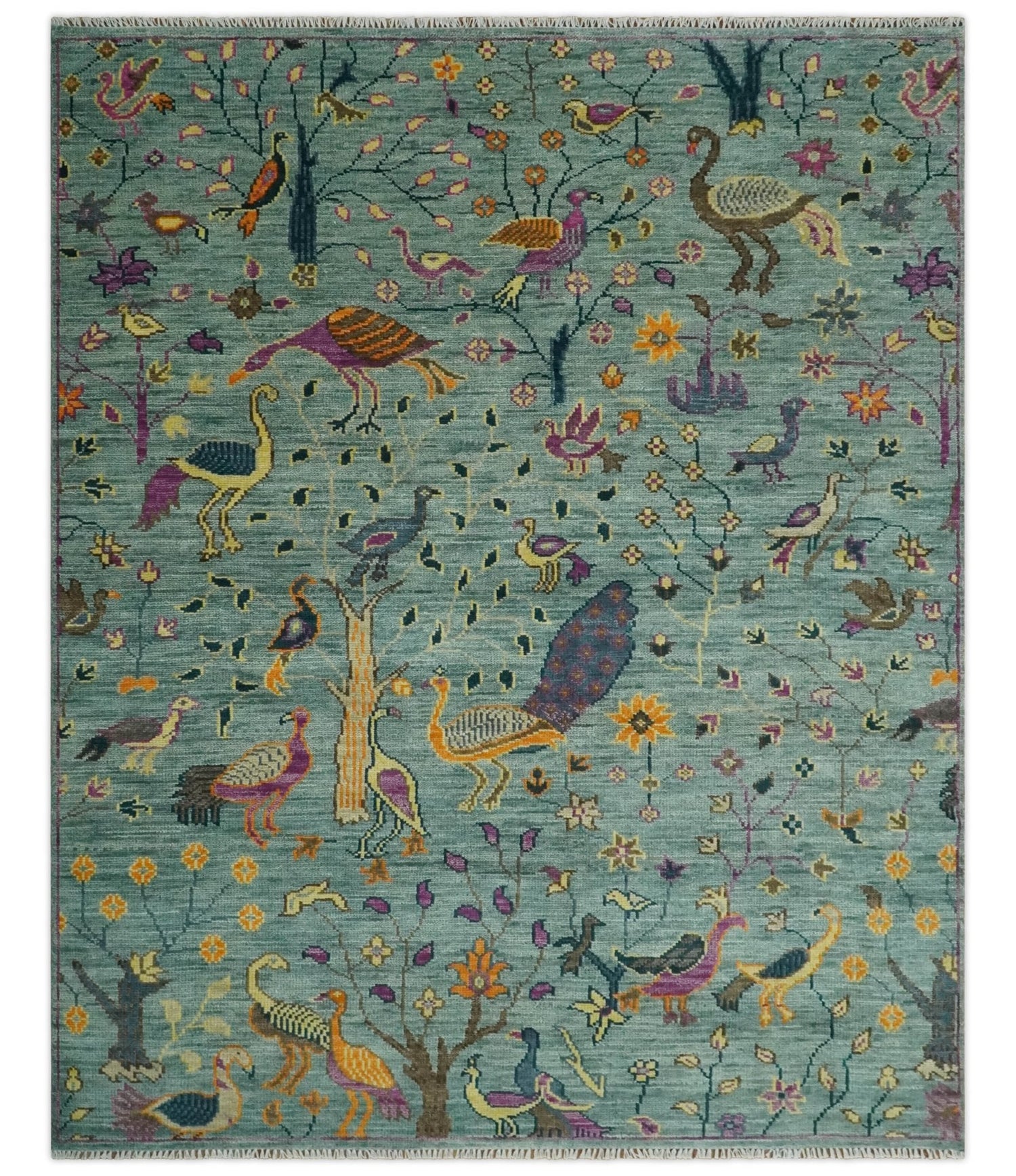 The Jungle Life Peacock Bird Rug Hand Knotted 8x10 Green Wool Rug