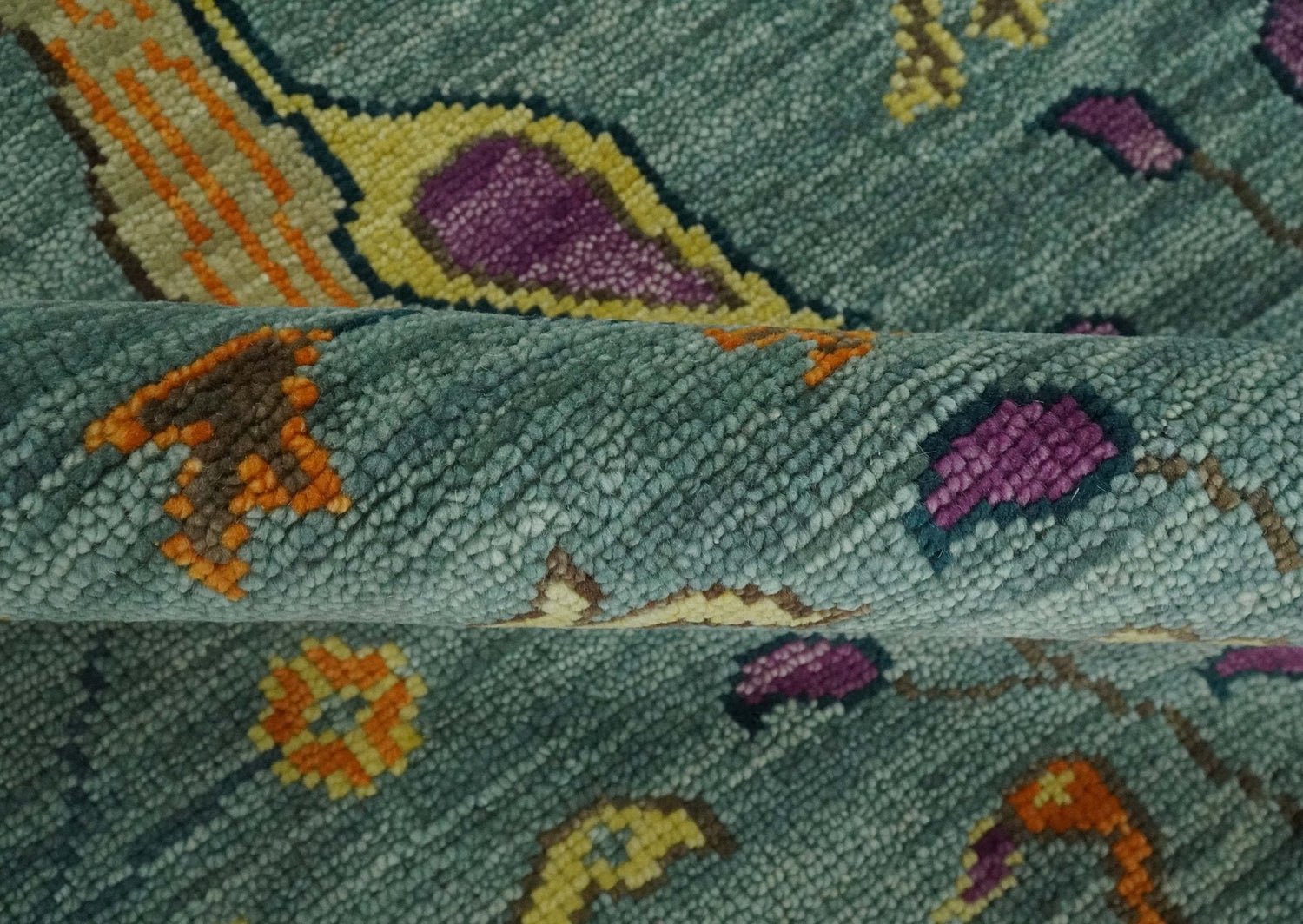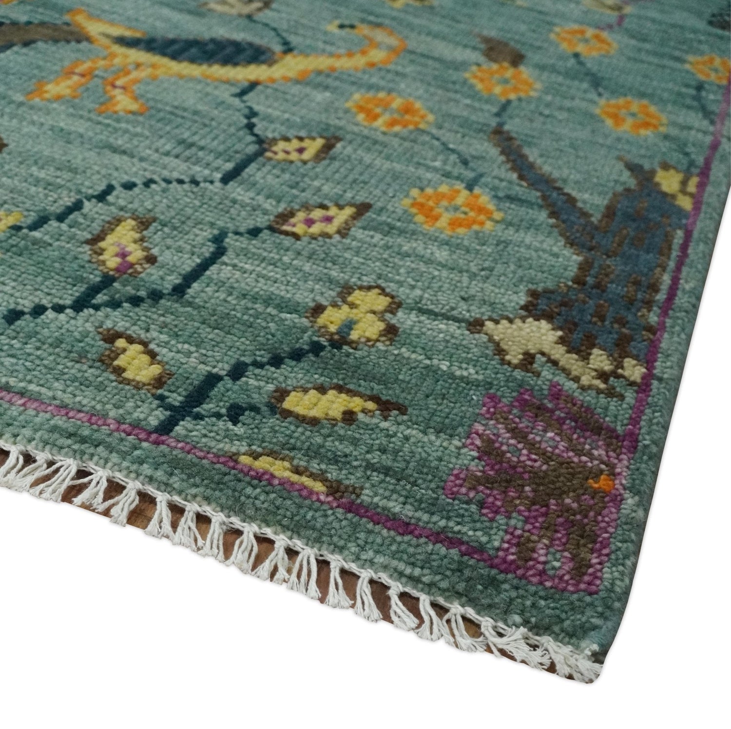 The Jungle Life Peacock Bird Rug Hand Knotted 8x10 Green Wool Rug - 8x8 square is backordered and will ship as soon as it is back in stock.