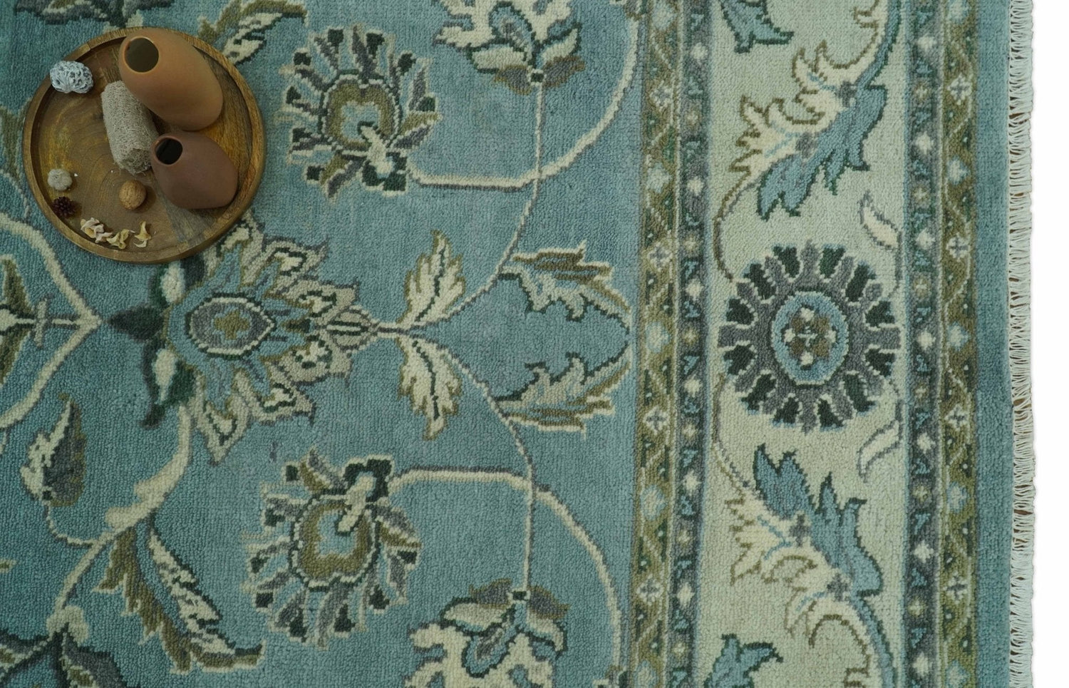 Traditional Floral Blue and Beige 8X10 Antique Style Hand Knotted Wool Rug - 8x10 is backordered and will ship as soon as it is back in stock.