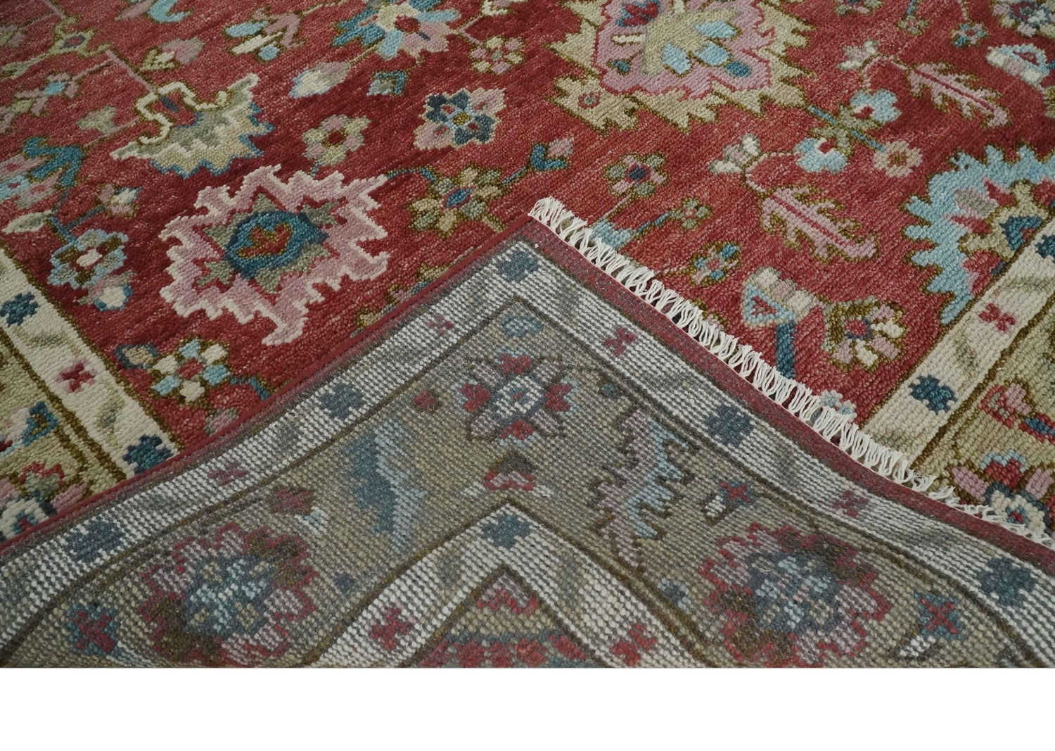 Traditional Floral Rust, Beige and Teal Hand knotted 8x10 Oushak wool Area Rug - 8x10 is backordered and will ship as soon as it is back in stock.