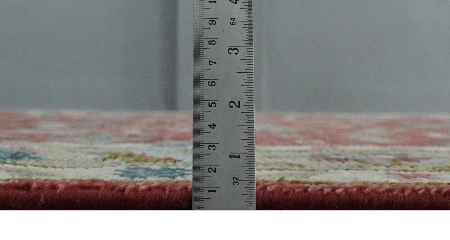 Oushak rugs have been made for centuries and carry a tradition and art. This specific rug is made in India, in the city of Bhadohi. Bhadohi is one of the biggest rug manufacturing cities. Carpet weaving in the region dates back to the 16th century during the reign of Akbar. The skilled artisans of Bhadohi have been carrying the tradition of rug-making for centuries.
