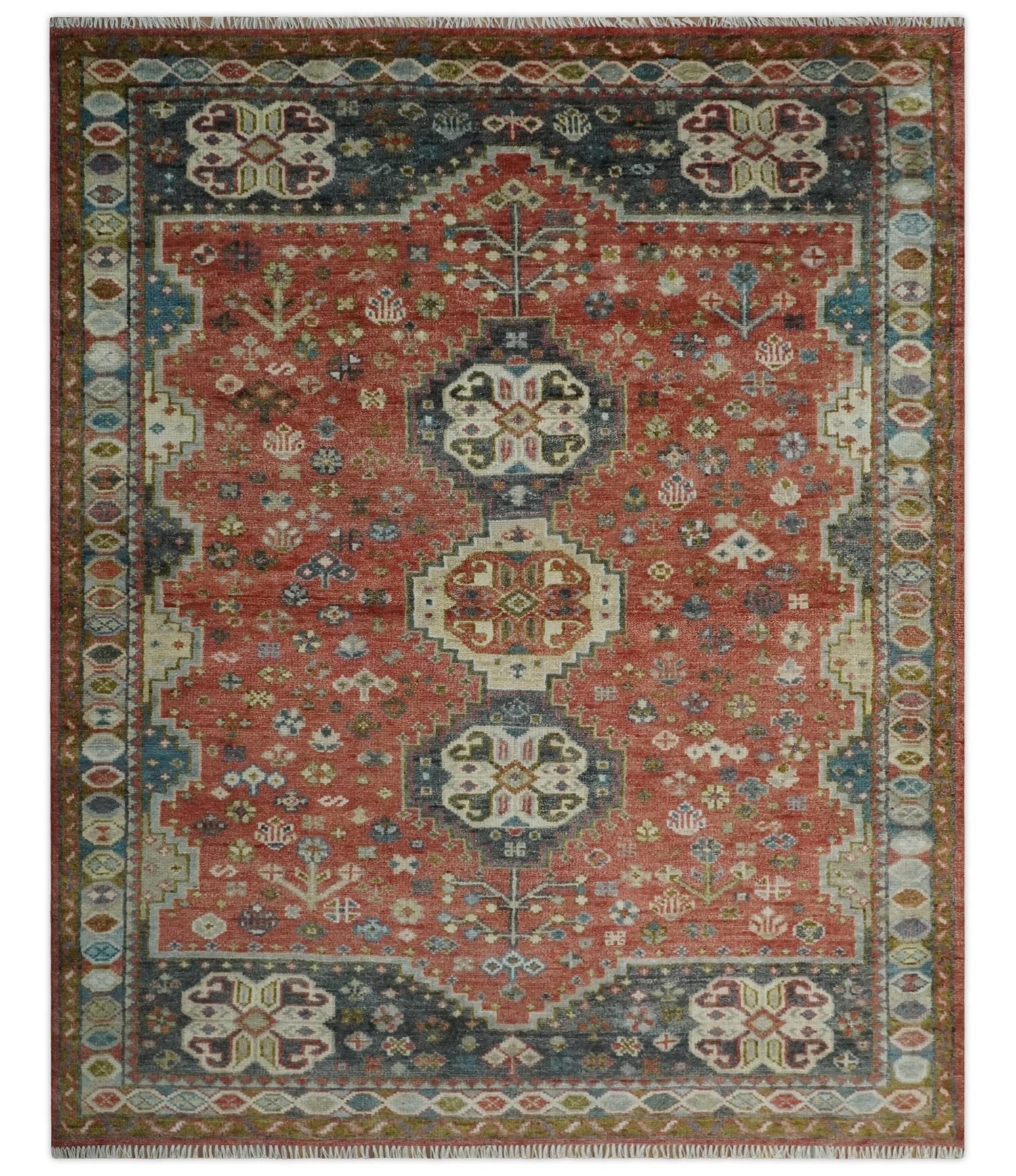 Traditional floral Rust, Charcoal and Beige Mamluk design 8x10 wool Area Rug