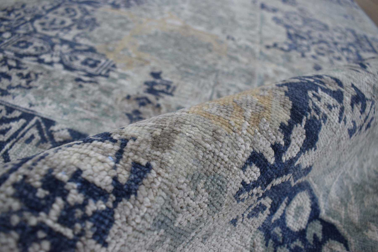 - Hand-knotted 8 feet by 10 feet wool rug