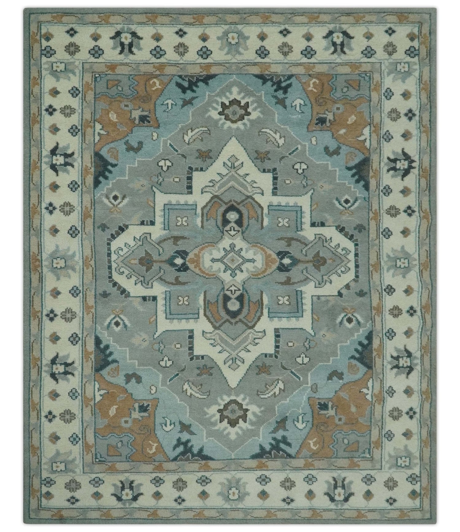 Traditional Heriz Gray and Ivory 7x9 and 8x10 Floral Hand Knotted wool Area Rug