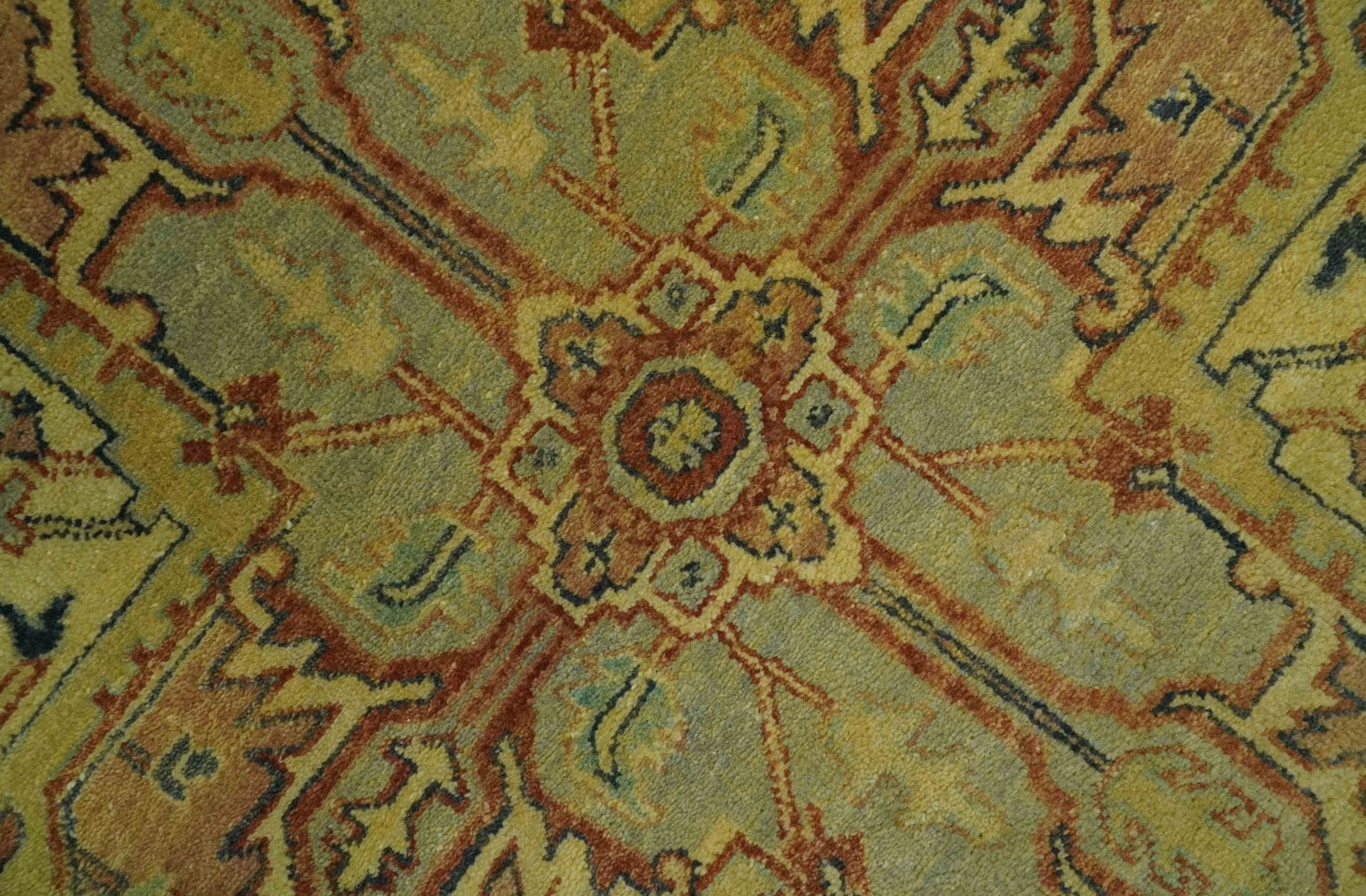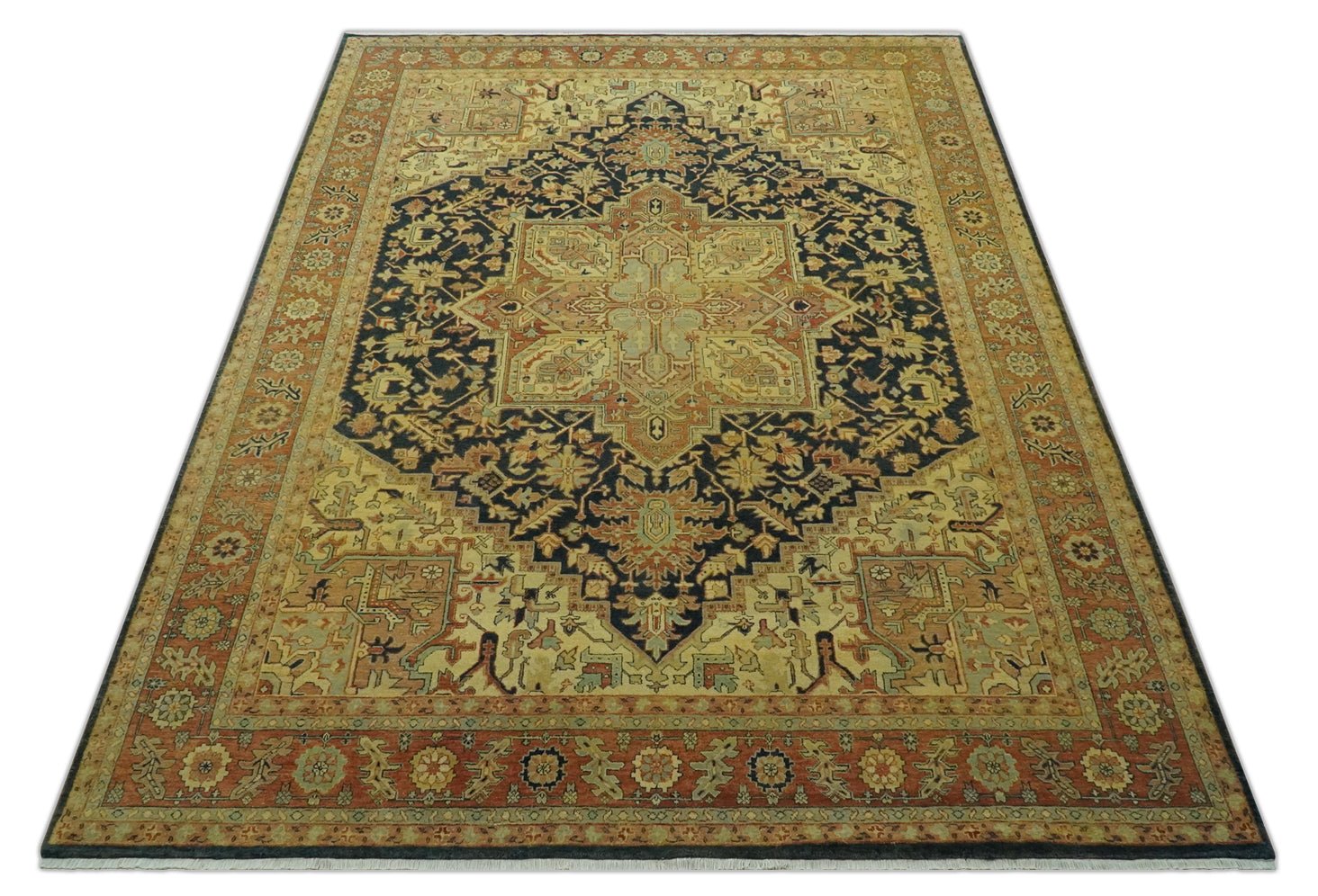 Traditional Heriz Vintage Style Fine Hand Knotted Gold, Blue and Rust Wool area Rug - 8.6x11.6 is backordered and will ship as soon as it is back in stock.
