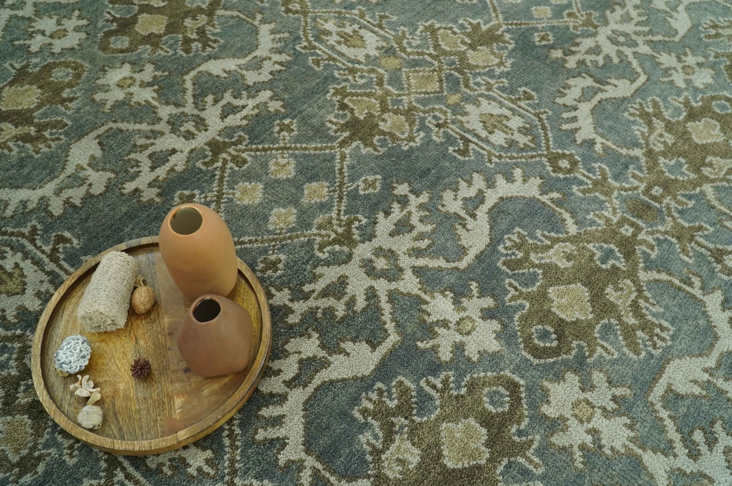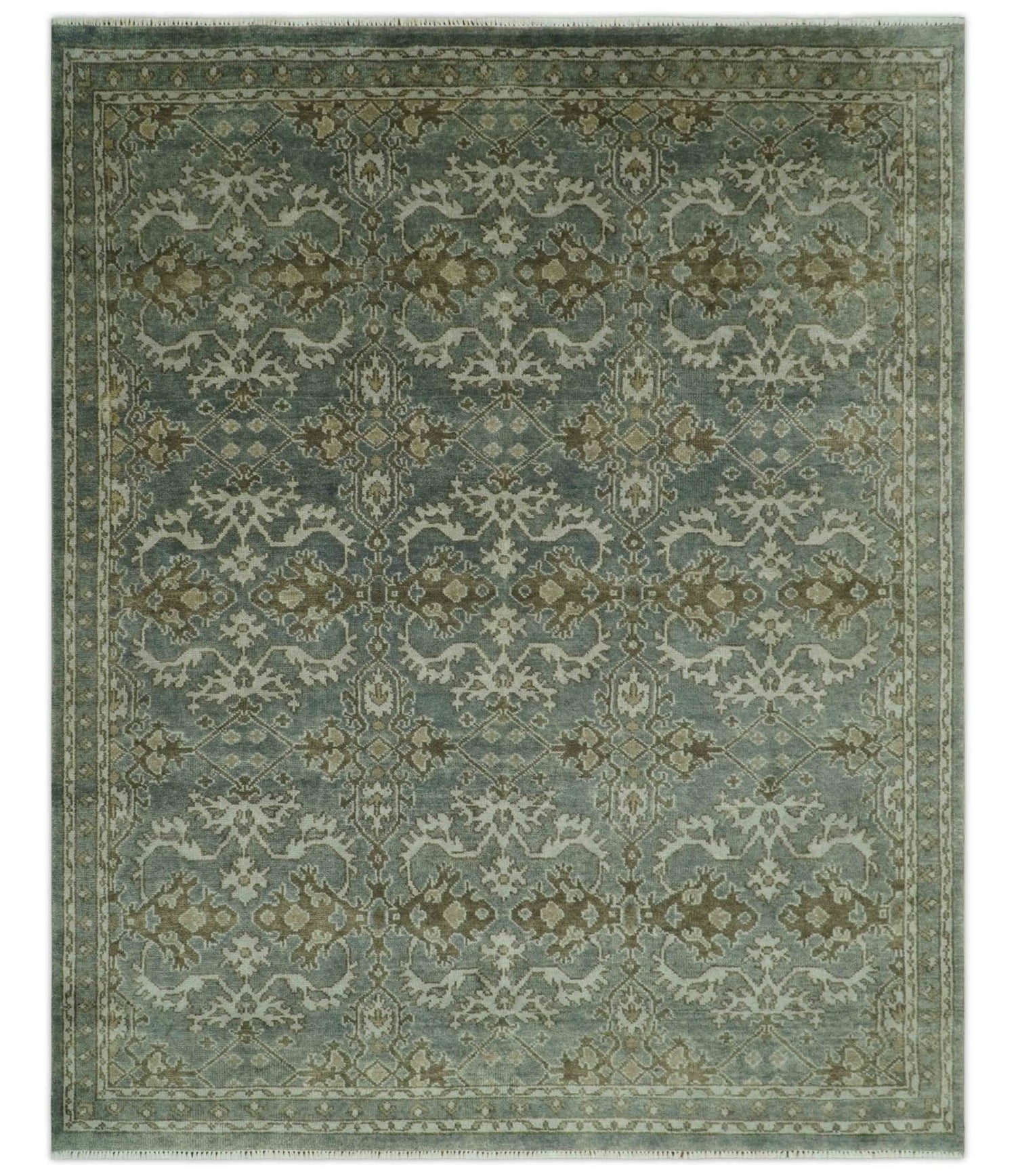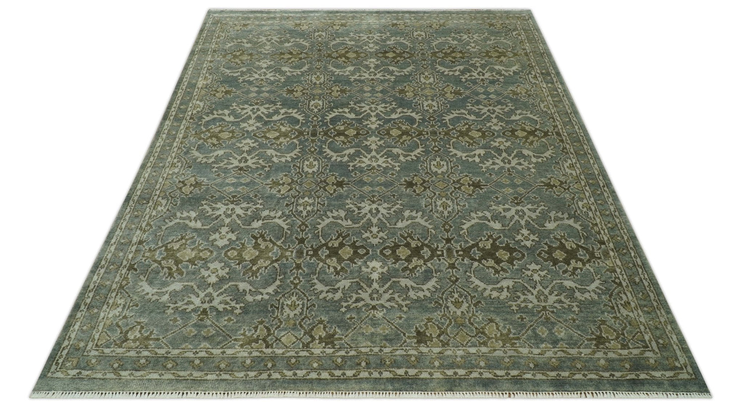 Traditional Ikat large Design Gray, Silver and Olive 8x10 Hand Knotted wool area rug