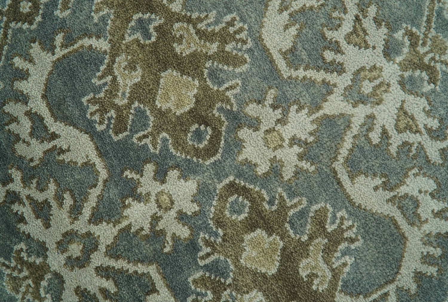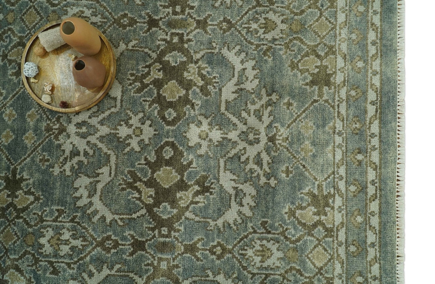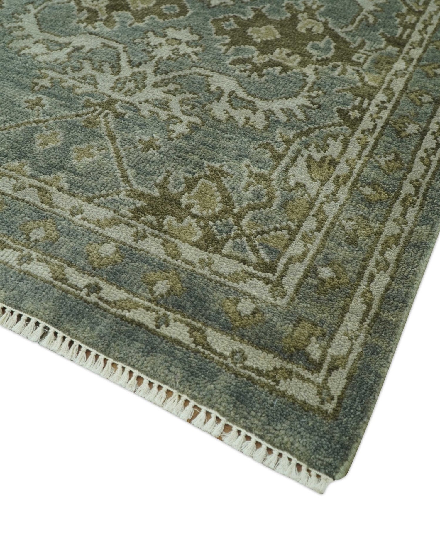 Traditional Ikat large Design Gray, Silver and Olive 8x10 Hand Knotted wool area rug
