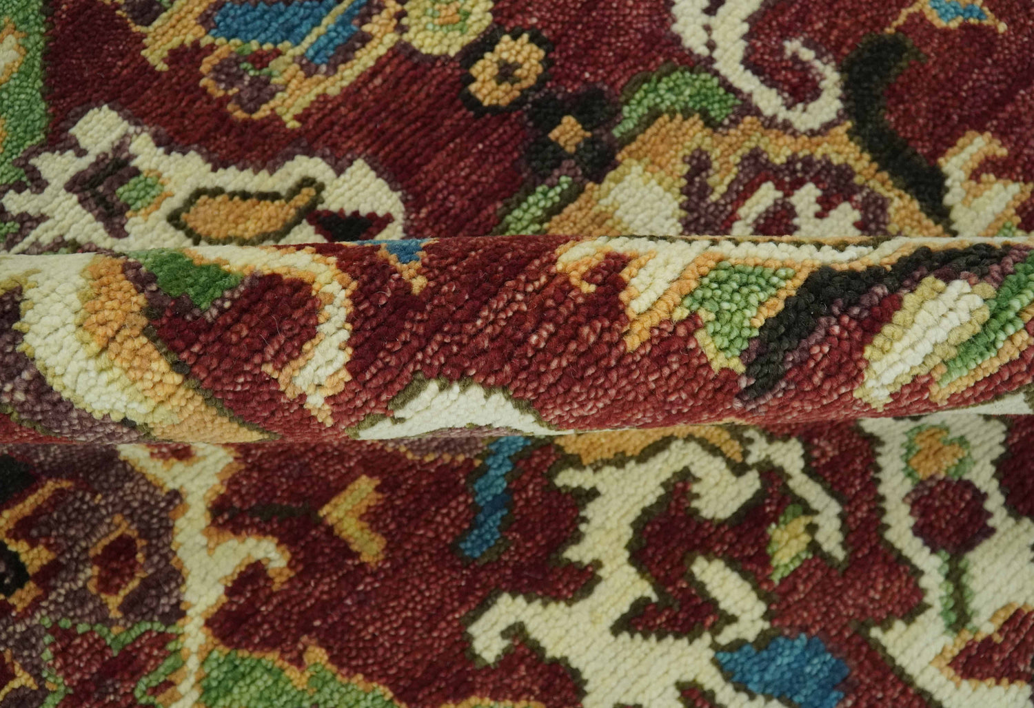 Traditional Large Design Maroon and Green Hand Knotted Custom Made wool area rug - 1x1 Swatch is backordered and will ship as soon as it is back in stock.