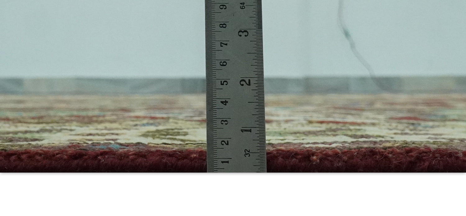 Expertly handcrafted with precision and care, this traditional large-design wool area rug boasts a stunning combination of maroon and green hues. Each hand-knotted detail showcases the expert craftsmanship put into creating this one-of-a-kind custom rug, elevating any space with its timeless charm.