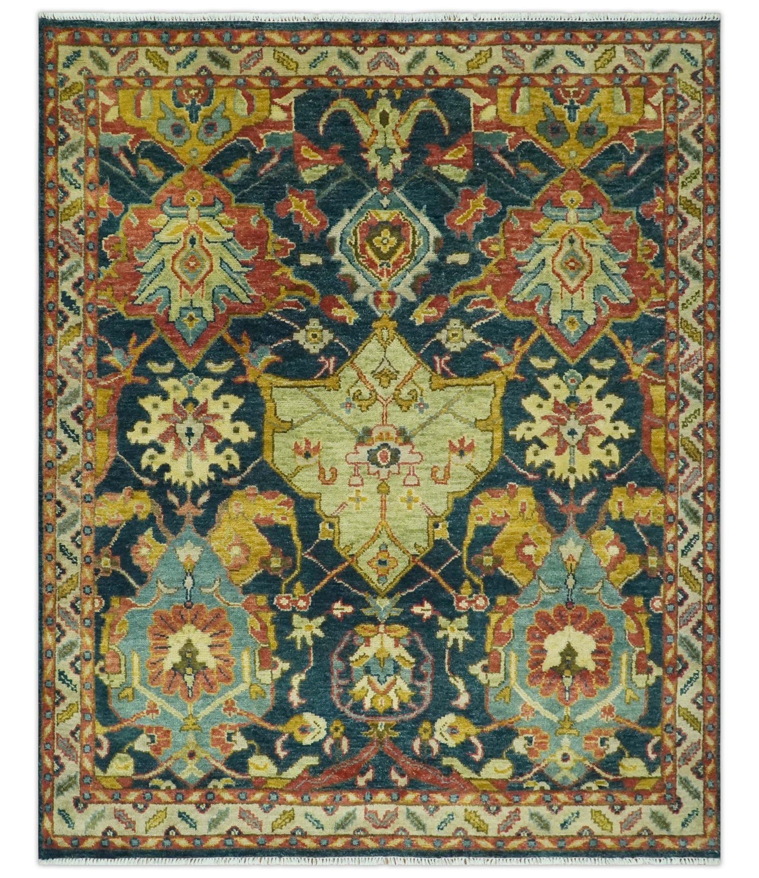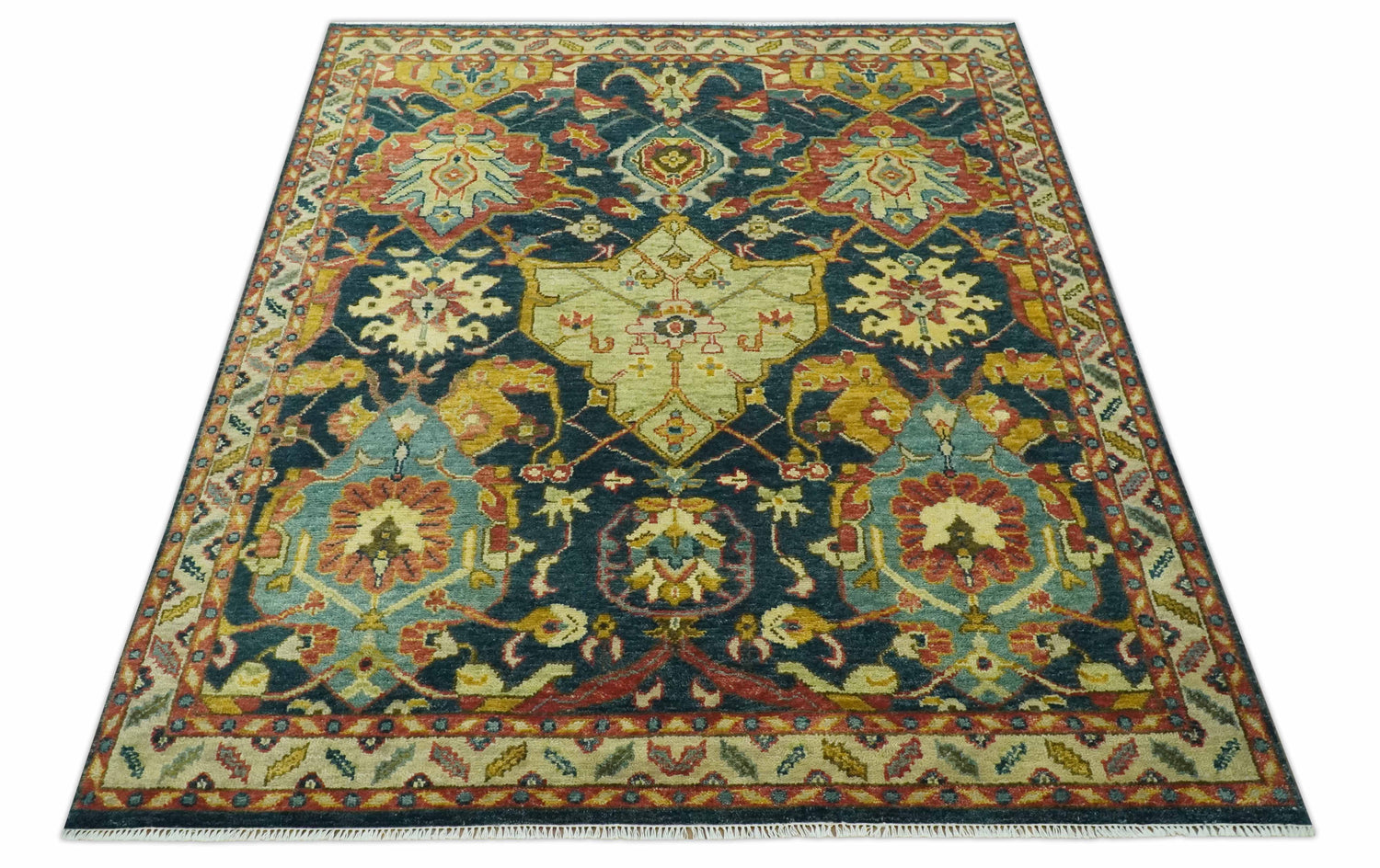 Traditional Oushak Blue and Gold Antique Style Hand knotted Custom Made Area Rug