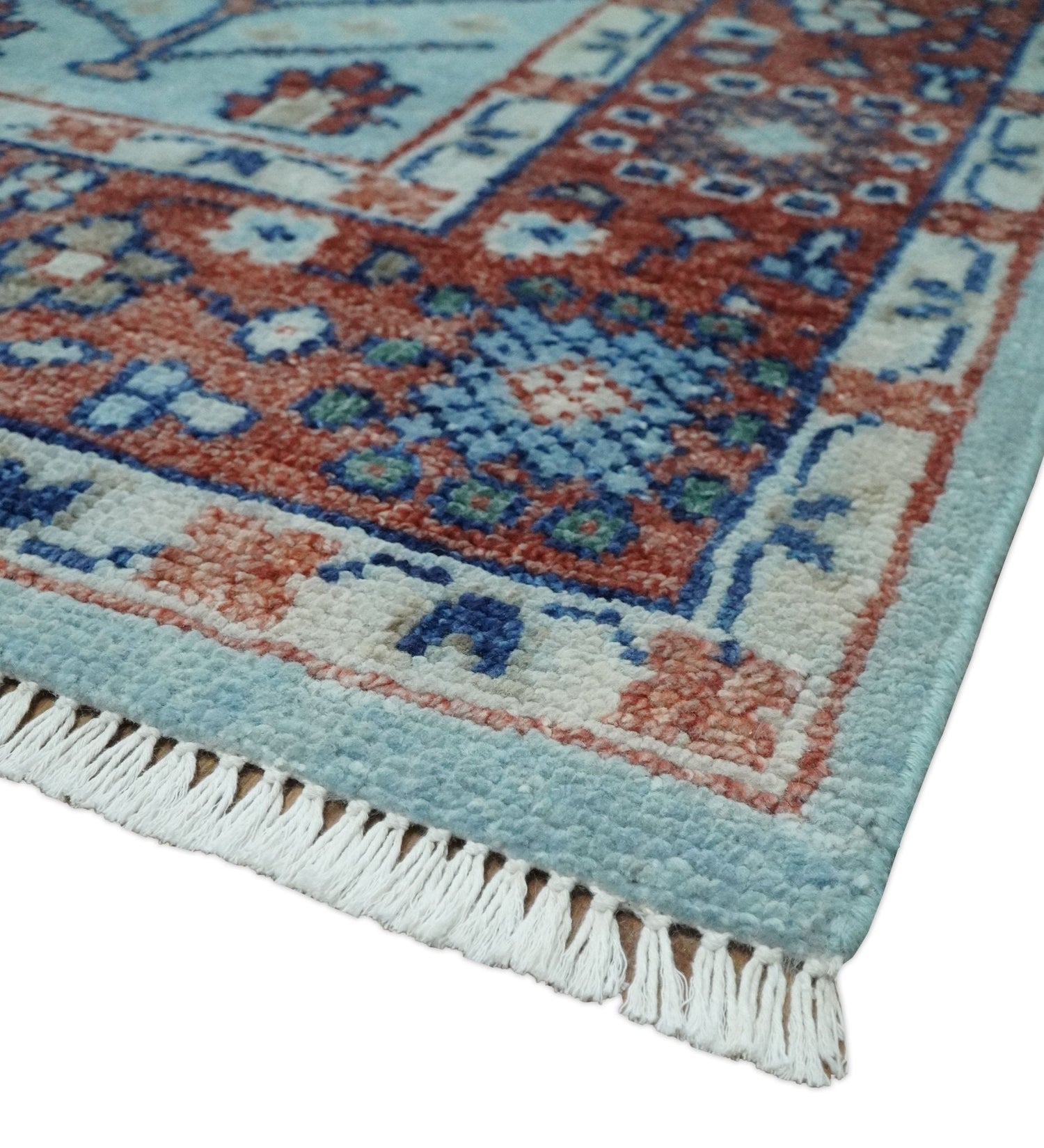 Tree of Life 8x10 Hand Knotted Blue and Rust Traditional Persian Vintage Oushak Wool Rug | TRD2747810S - 8x10 is backordered and will ship as soon as it is back in stock.