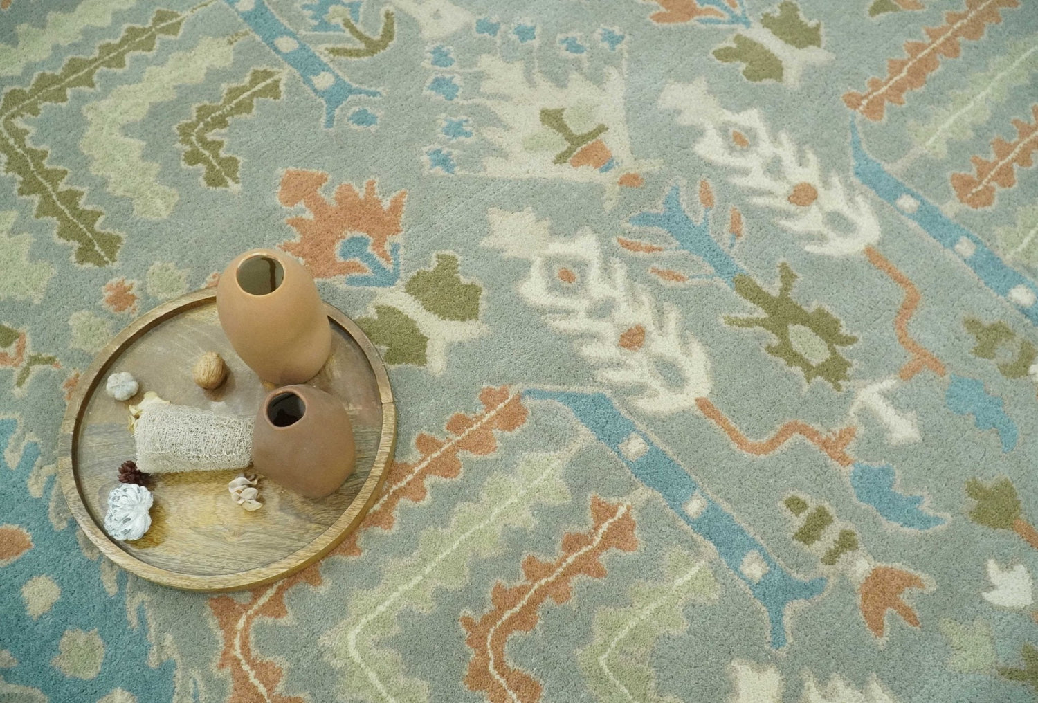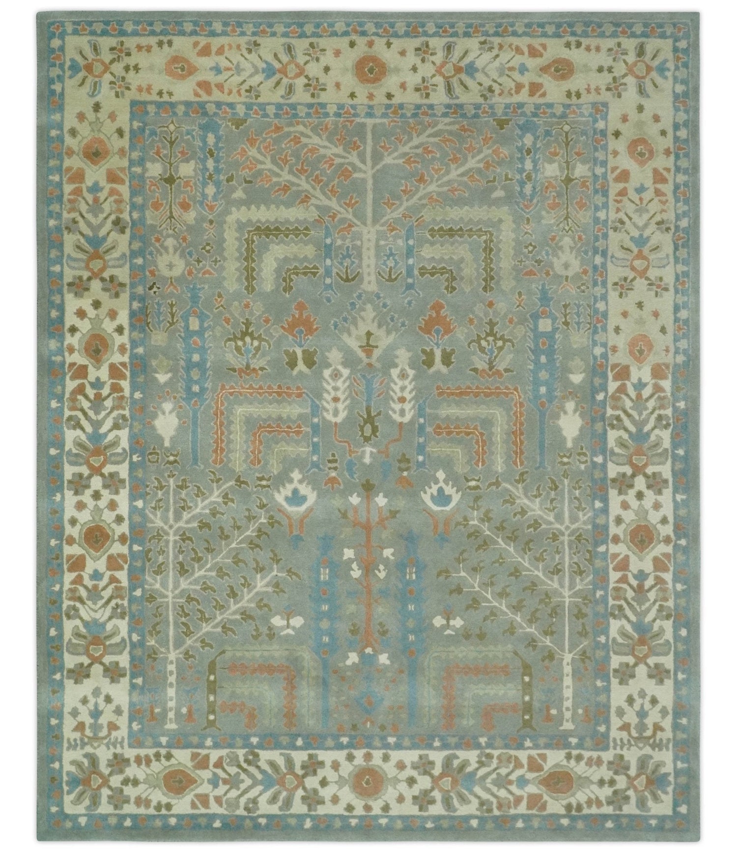 Tree of life Traditional Floral Gray, Beige, Green and Dark Peach Hand Tufted 8x10 wool Area Rug