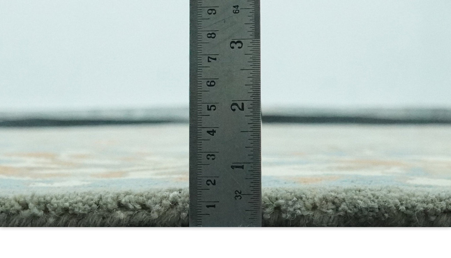 The rug features an exquisite blend of muted blues, earthy greens, and soft terracotta, creating a serene, elegant palette. The intricate design showcases stylized floral and geometric motifs, reminiscent of classic Persian influences, adding a timeless sophistication. A central medallion is subtly framed by ornate borders, enhancing the rug's luxurious appeal. Crafted with a plush texture, it promises a sumptuous feel underfoot, making it a perfect statement piece for any opulent living space.