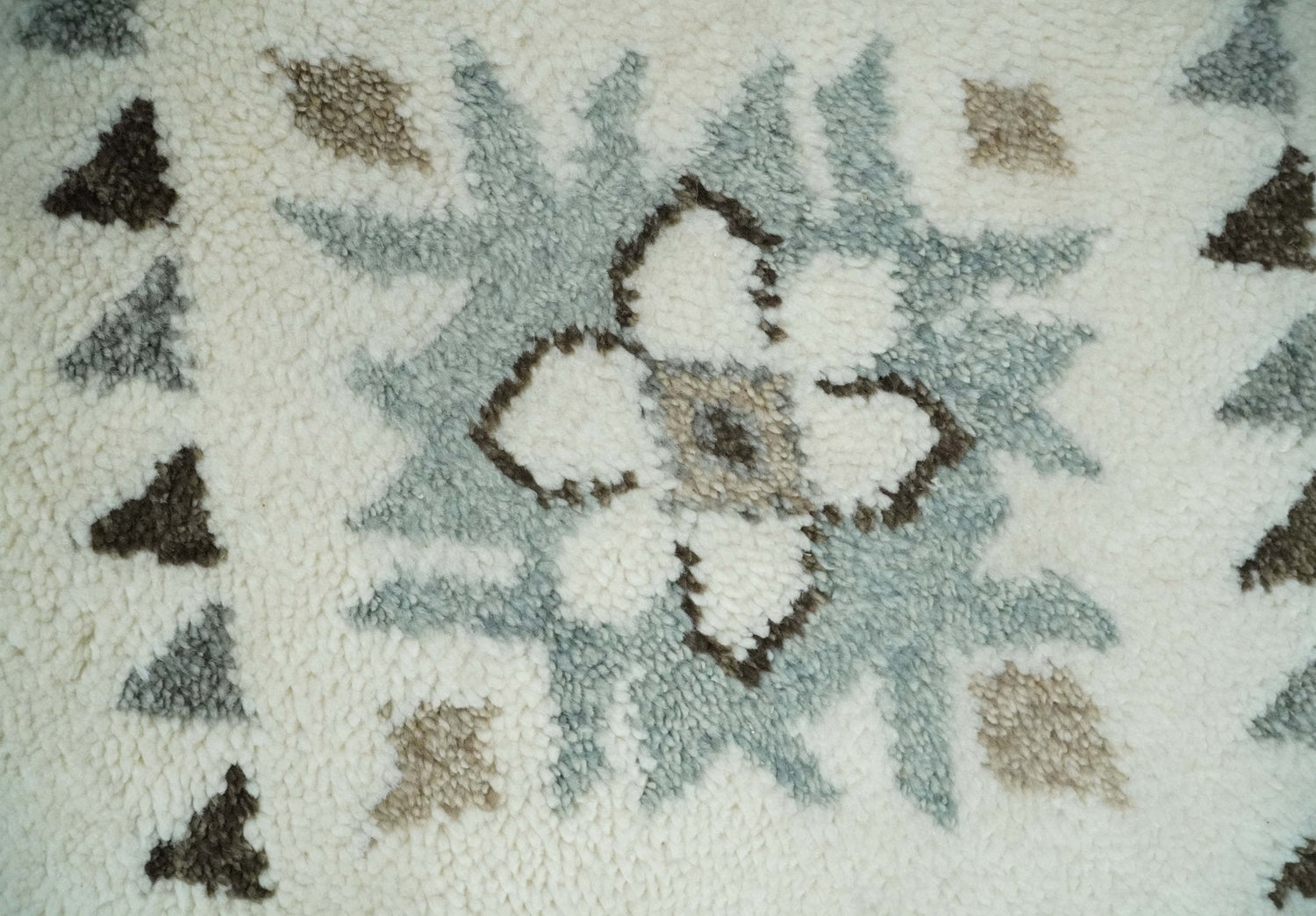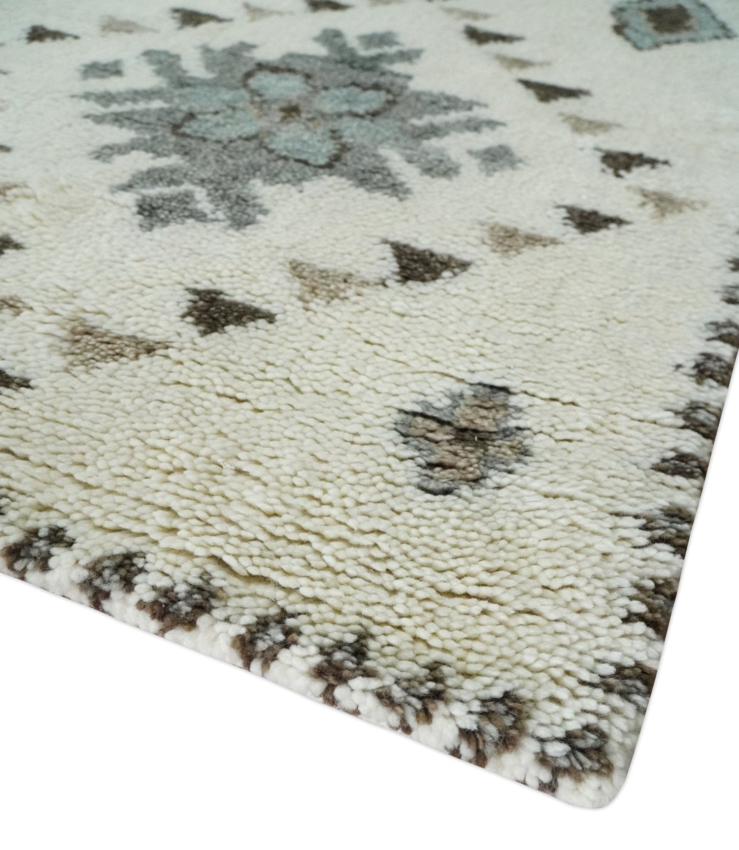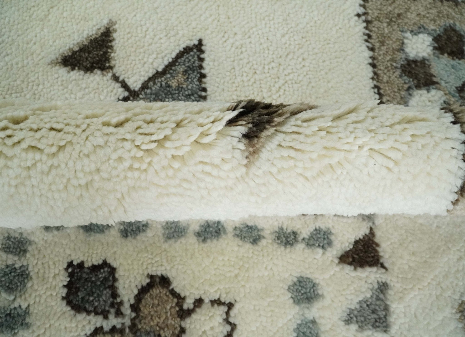 Tribal Design 8x10 Ivory and Brown Traditional Geometrical Pattern Hand Knotted Wool Area Rug