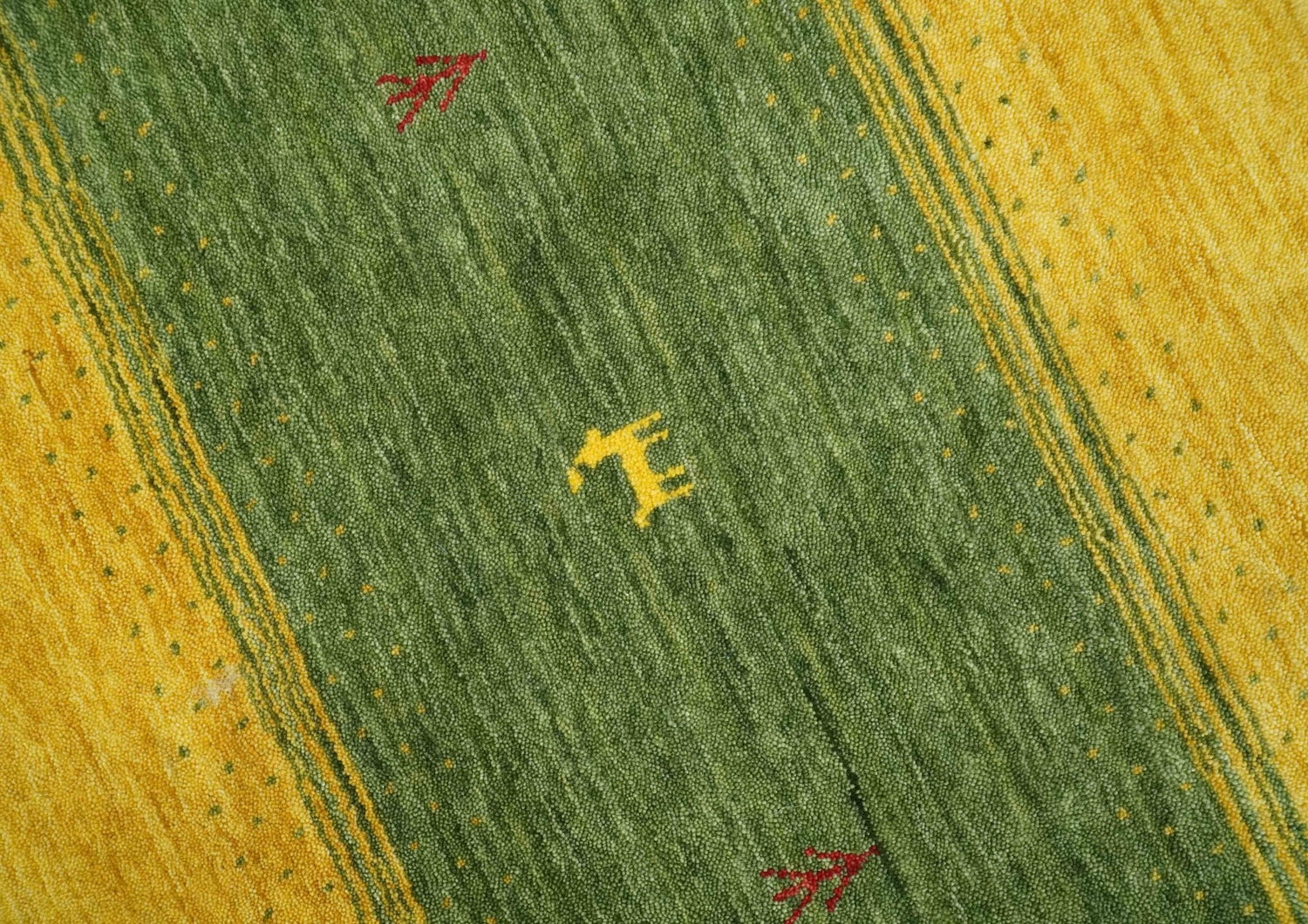 Expertly hand loom and crafted from premium wool, the Tribal Gabbeh Rug boasts a traditional design in striking shades of green, gold, blue, maroon, and ivory. Its 4.6x6.6 options make it versatile for any space. Elevate your décor with this timeless and luxurious addition.