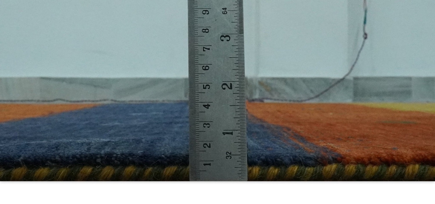 Tribal Gabbeh Green, Gold, Rust and Blue Stripes Design 4.6x7 Wool area Rug - 4.6x7 is backordered and will ship as soon as it is back in stock.