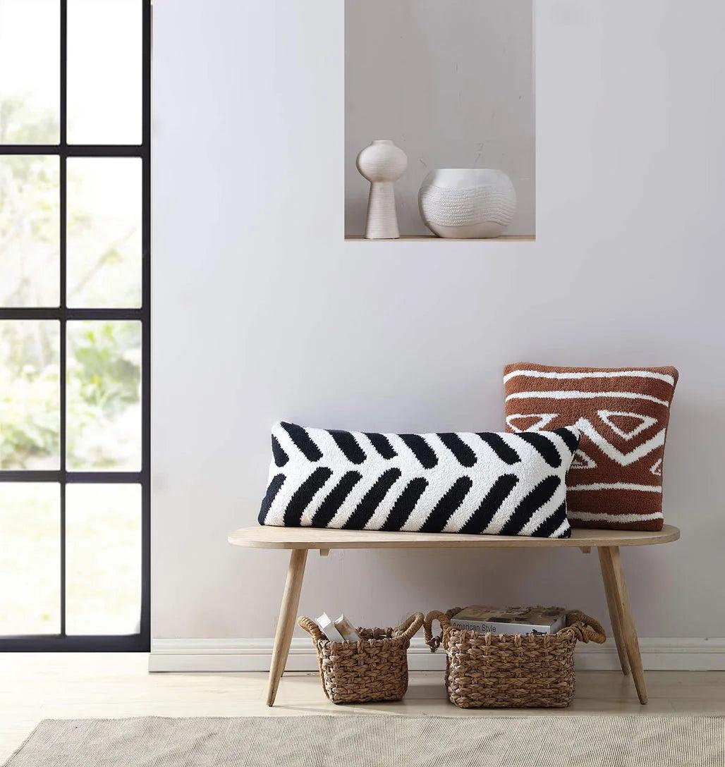 Tulum Lumbar Pillow - Black - Off White / 36" x 14" is backordered and will ship as soon as it is back in stock.
