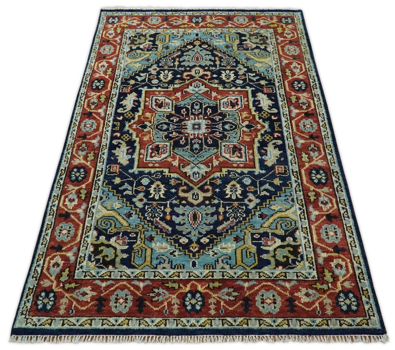 Wool 6x9 Blue and Rust Traditional Persian Antique Area Rug | TRDCP19669