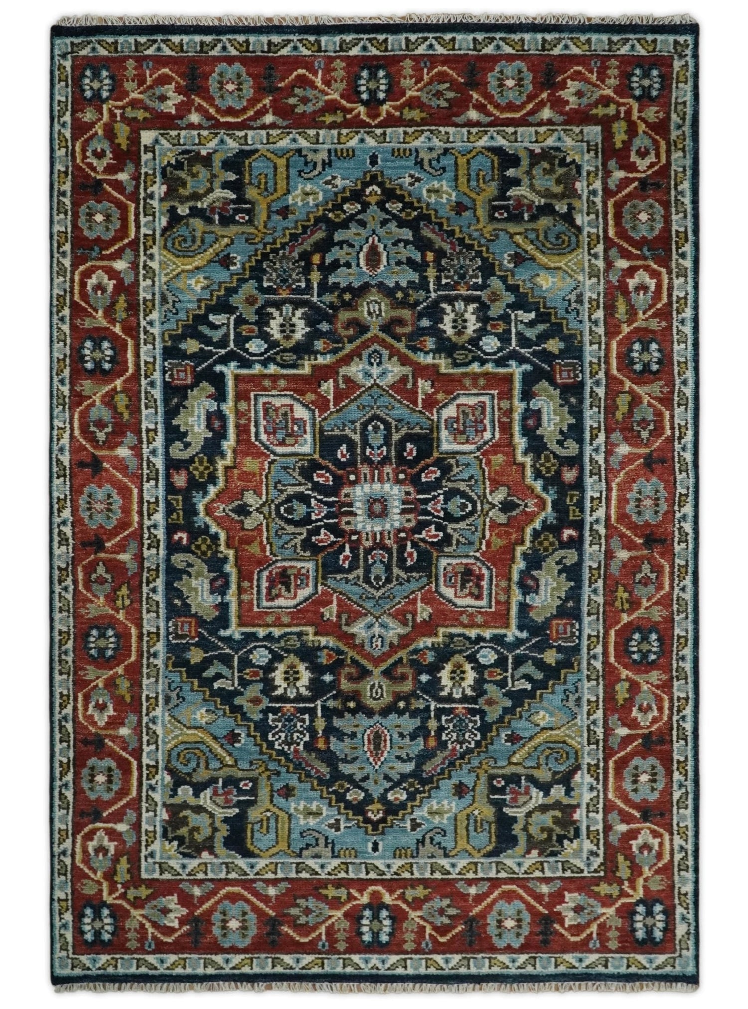 Wool 6x9 Blue and Rust Traditional Persian Antique Area Rug | TRDCP196B69