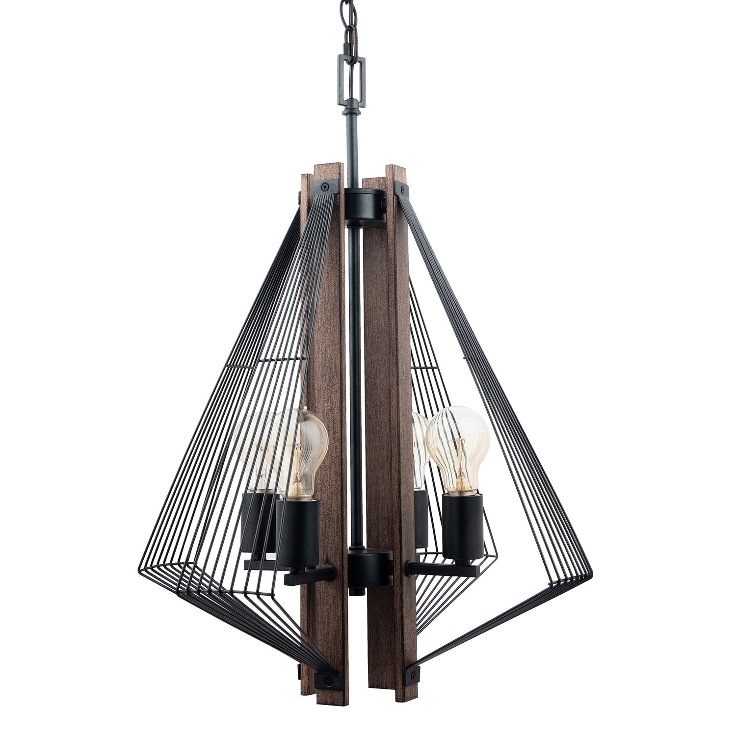 This sleek and stylish 4-light, 18-inch modern pendant is the perfect addition to any modern space. It features a black metal frame with a wood finish center, making it the ideal combination of contemporary and rustic design. Its four lights cast a warm and inviting light, ideal for any room in the home.